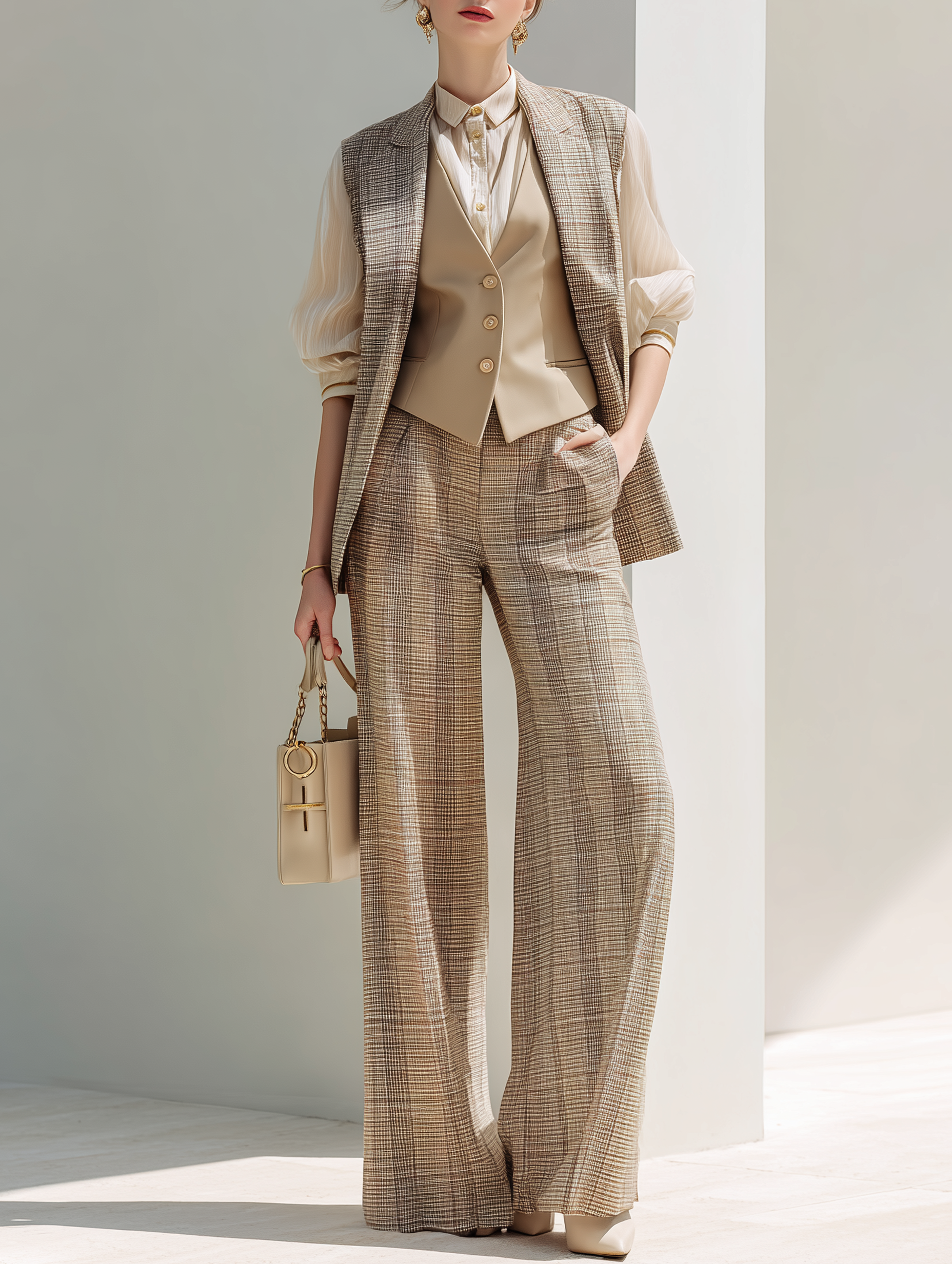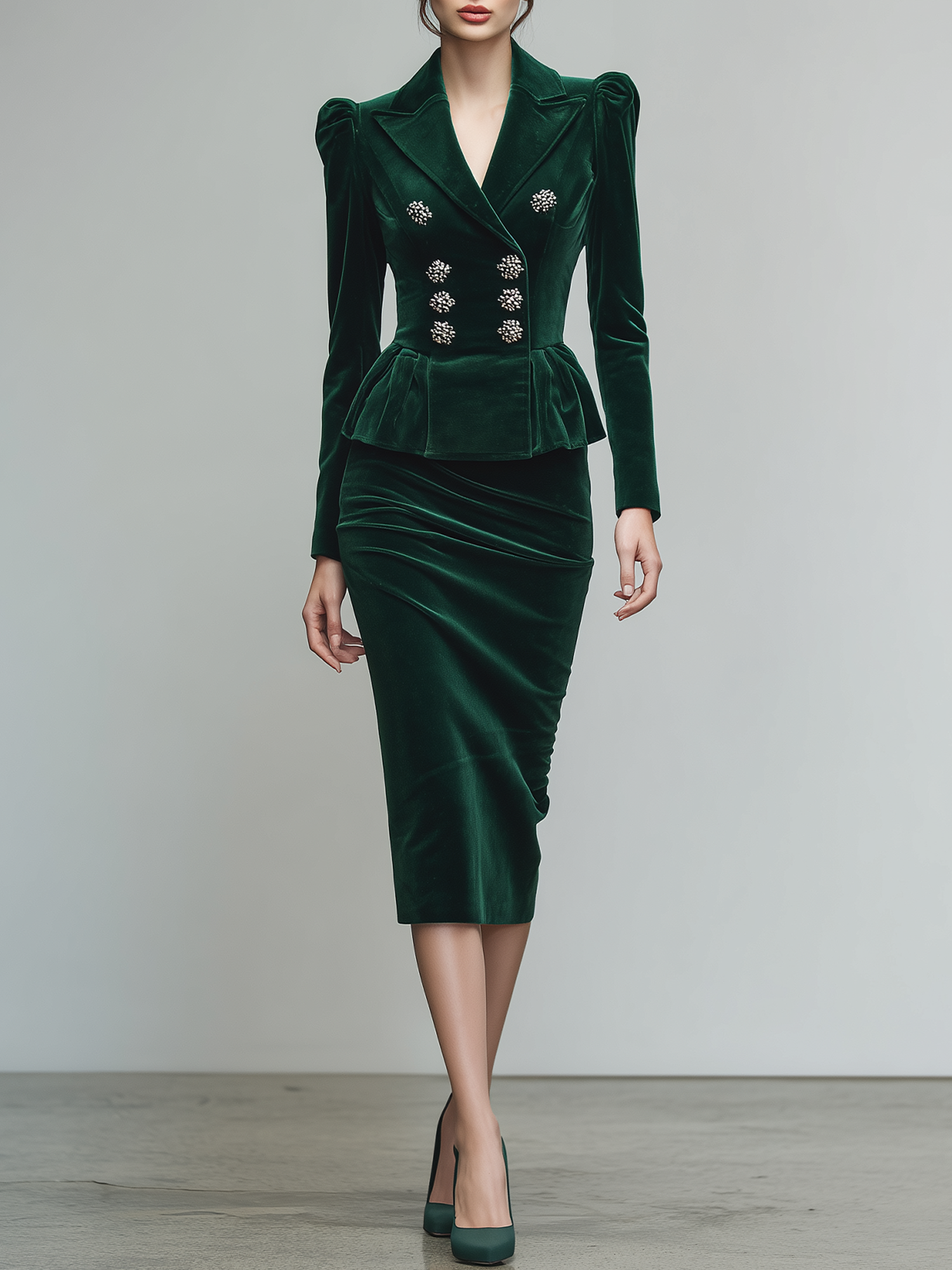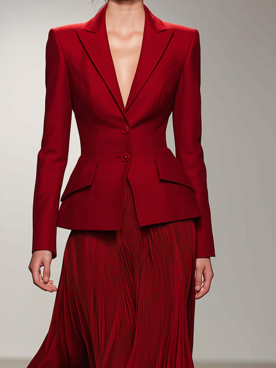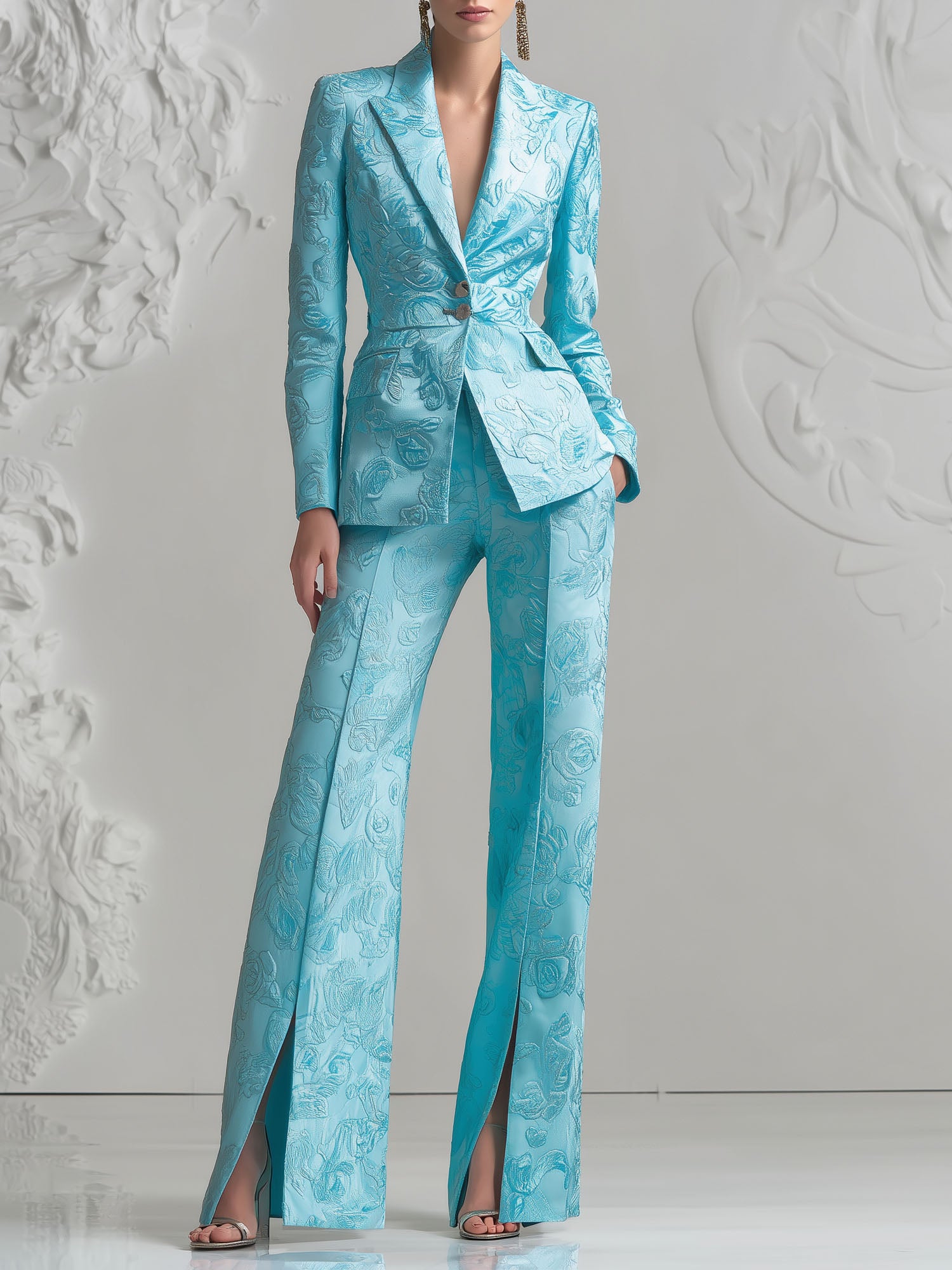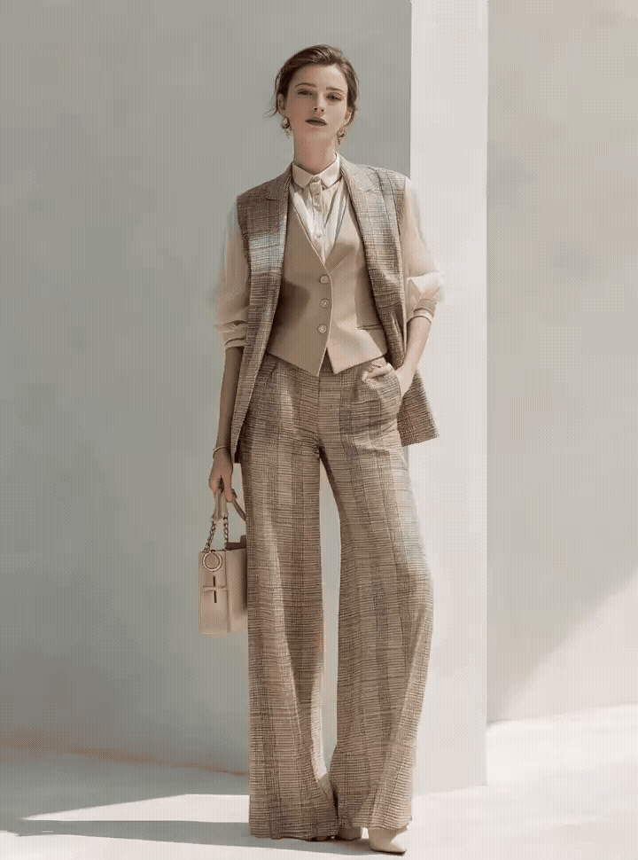 Pair this sophisticated suit with a pair of high heels and delicate jewelry to elevate the look for a night out or a special event. For a more relaxed vibe, match it with elegant ballet flats and a simple clutch bag.