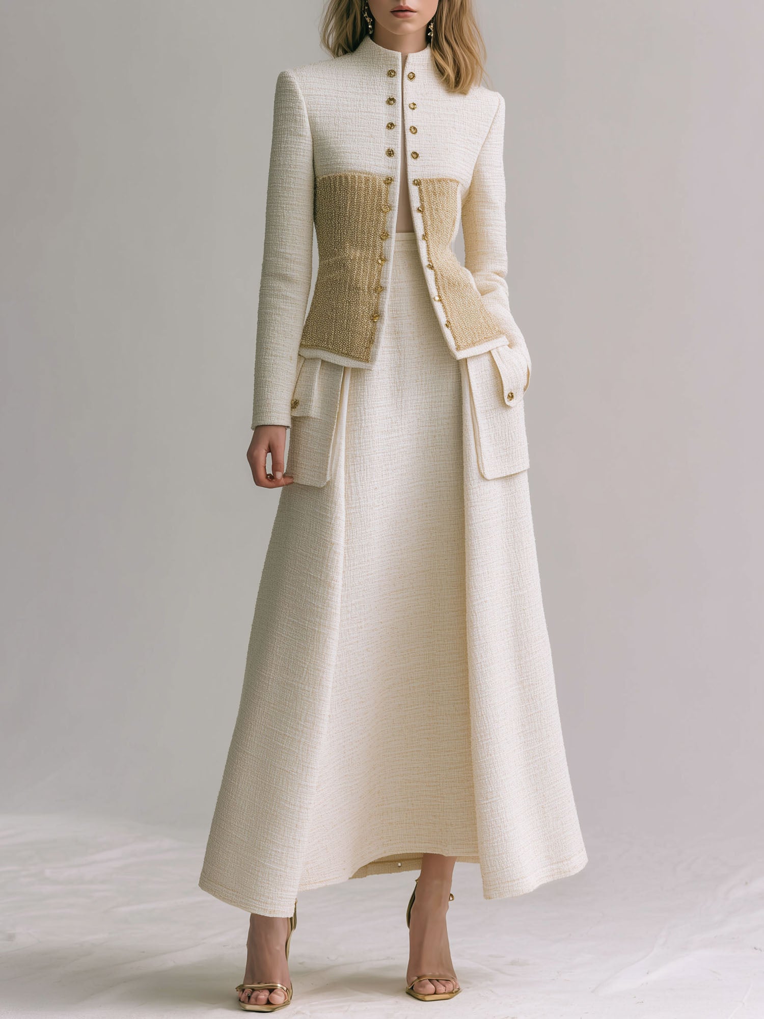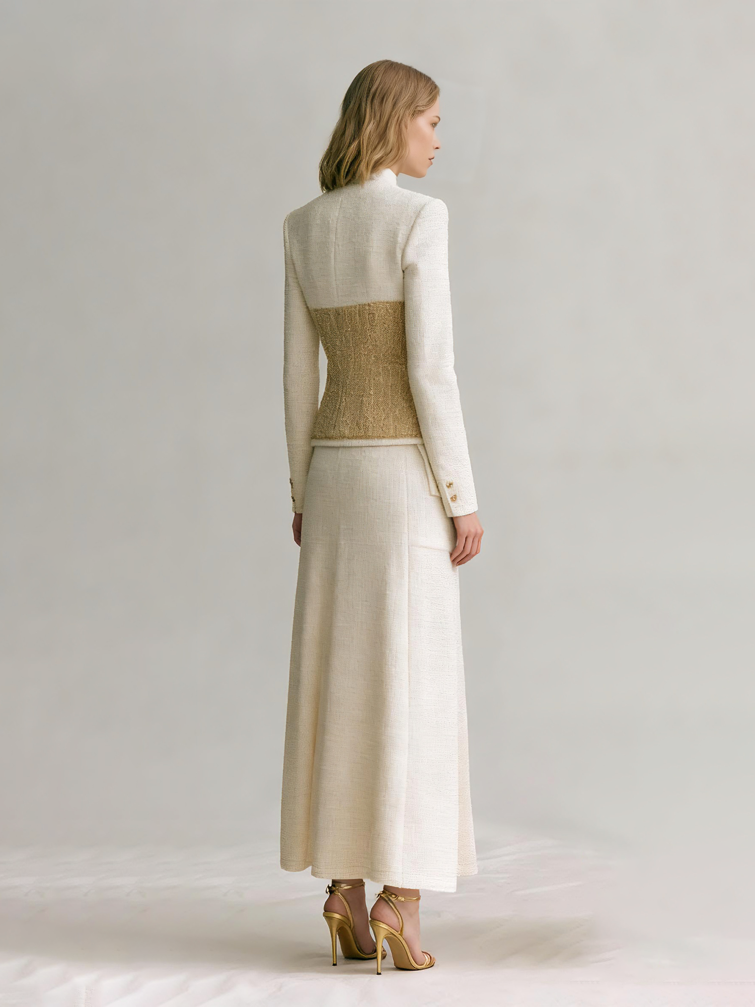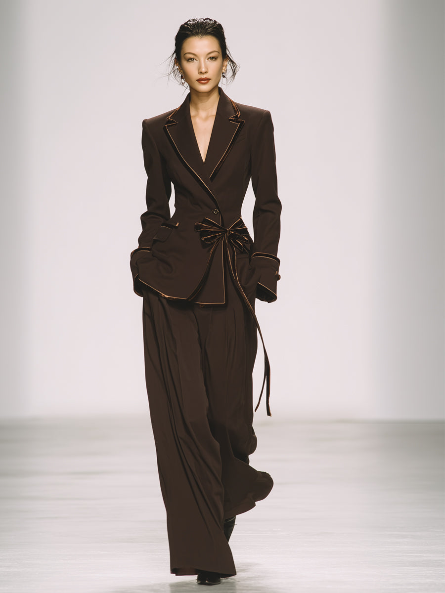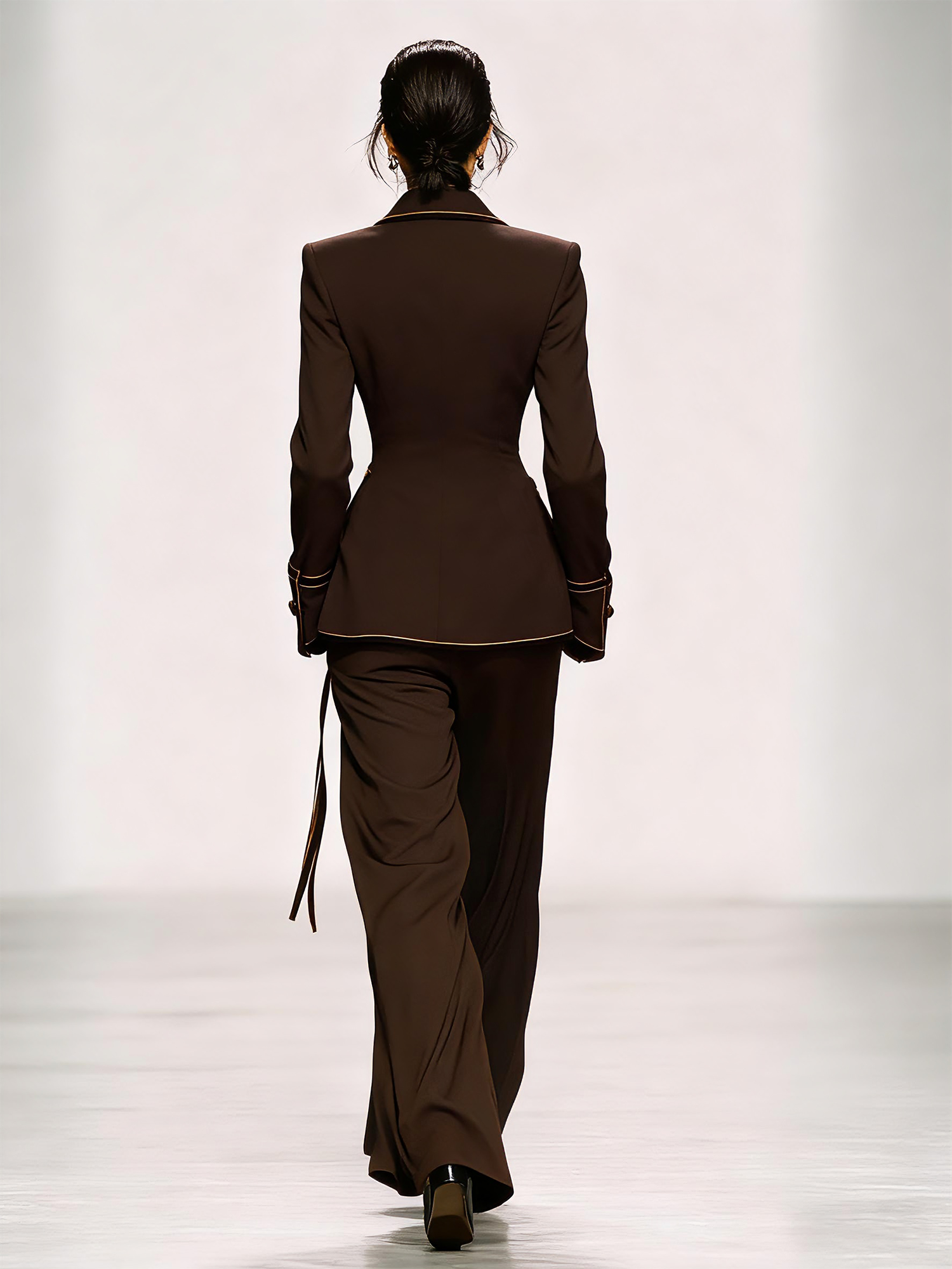 Pair this sophisticated suit with a pair of high heels and delicate jewelry to elevate the look for a night out or a special event. For a more relaxed vibe, match it with elegant ballet flats and a simple clutch bag.