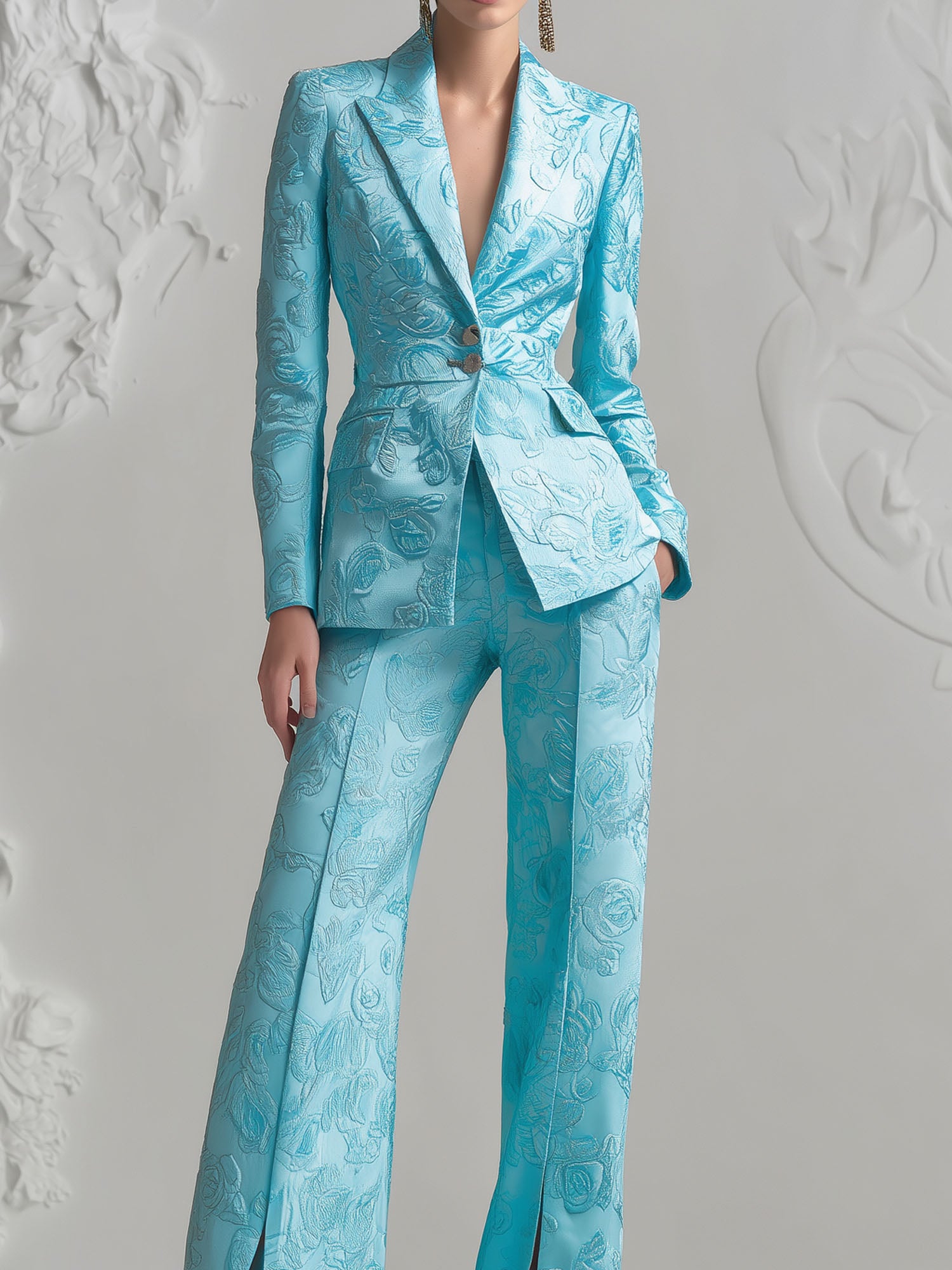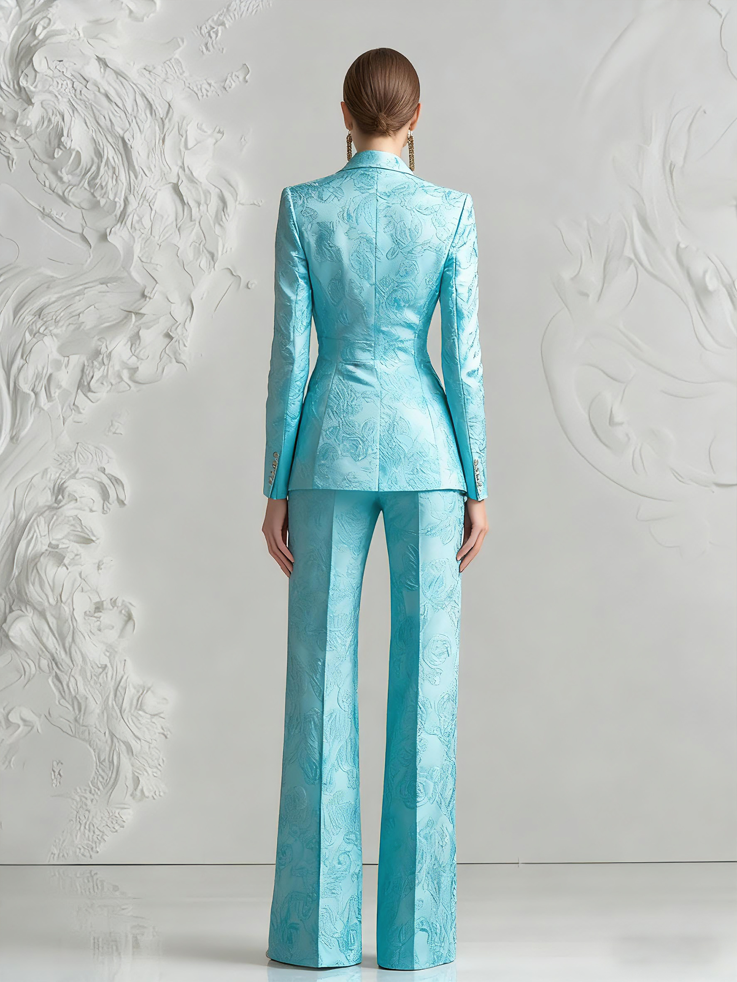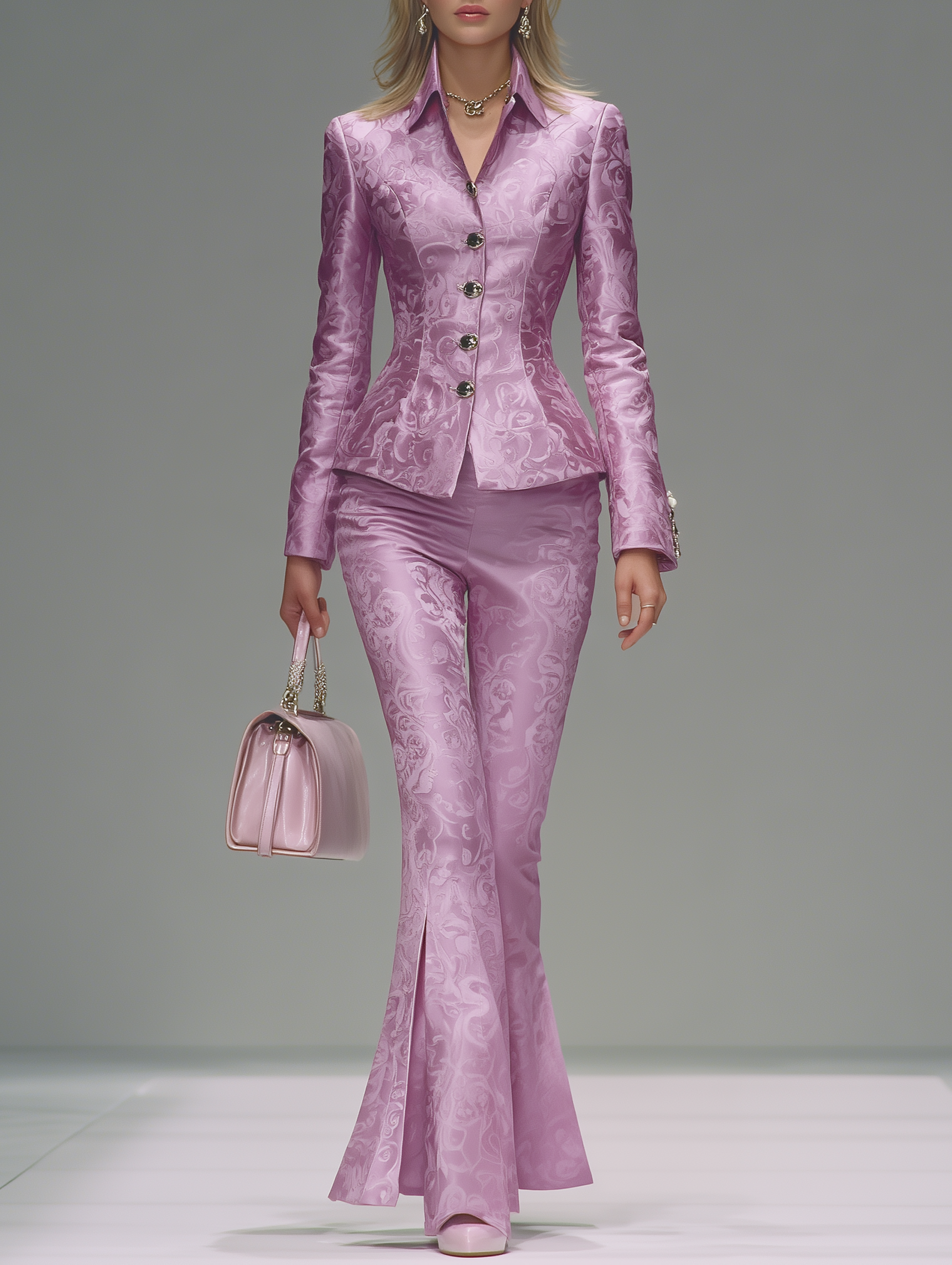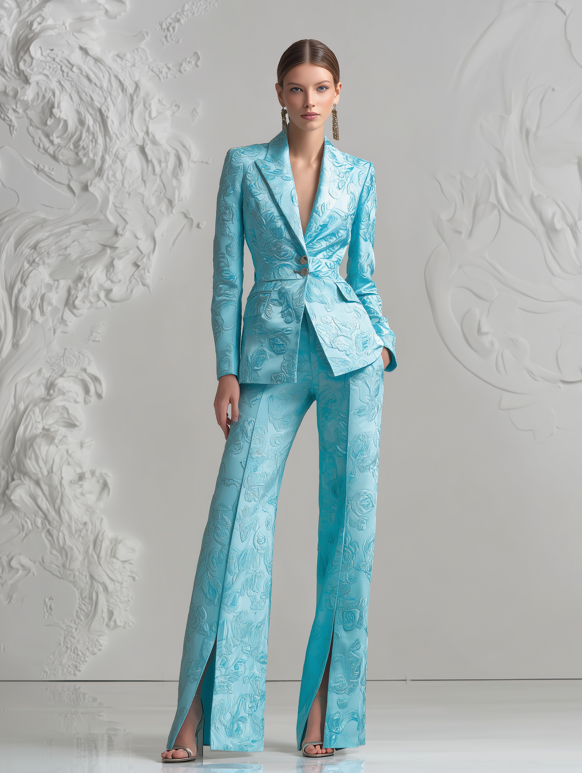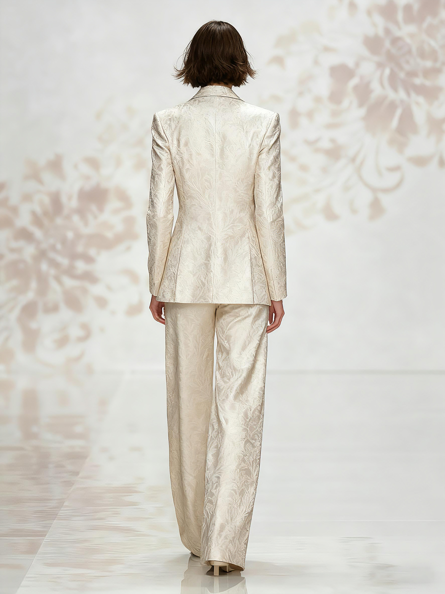 Pair this sophisticated suit with a pair of high heels and delicate jewelry to elevate the look for a night out or a special event. For a more relaxed vibe, match it with elegant ballet flats and a simple clutch bag.