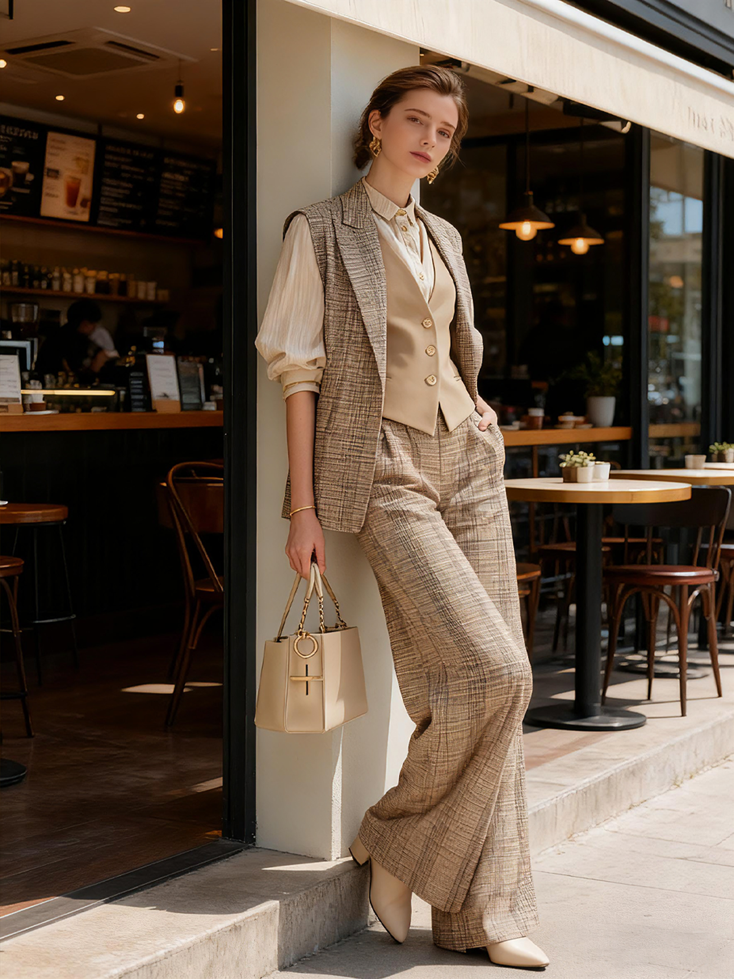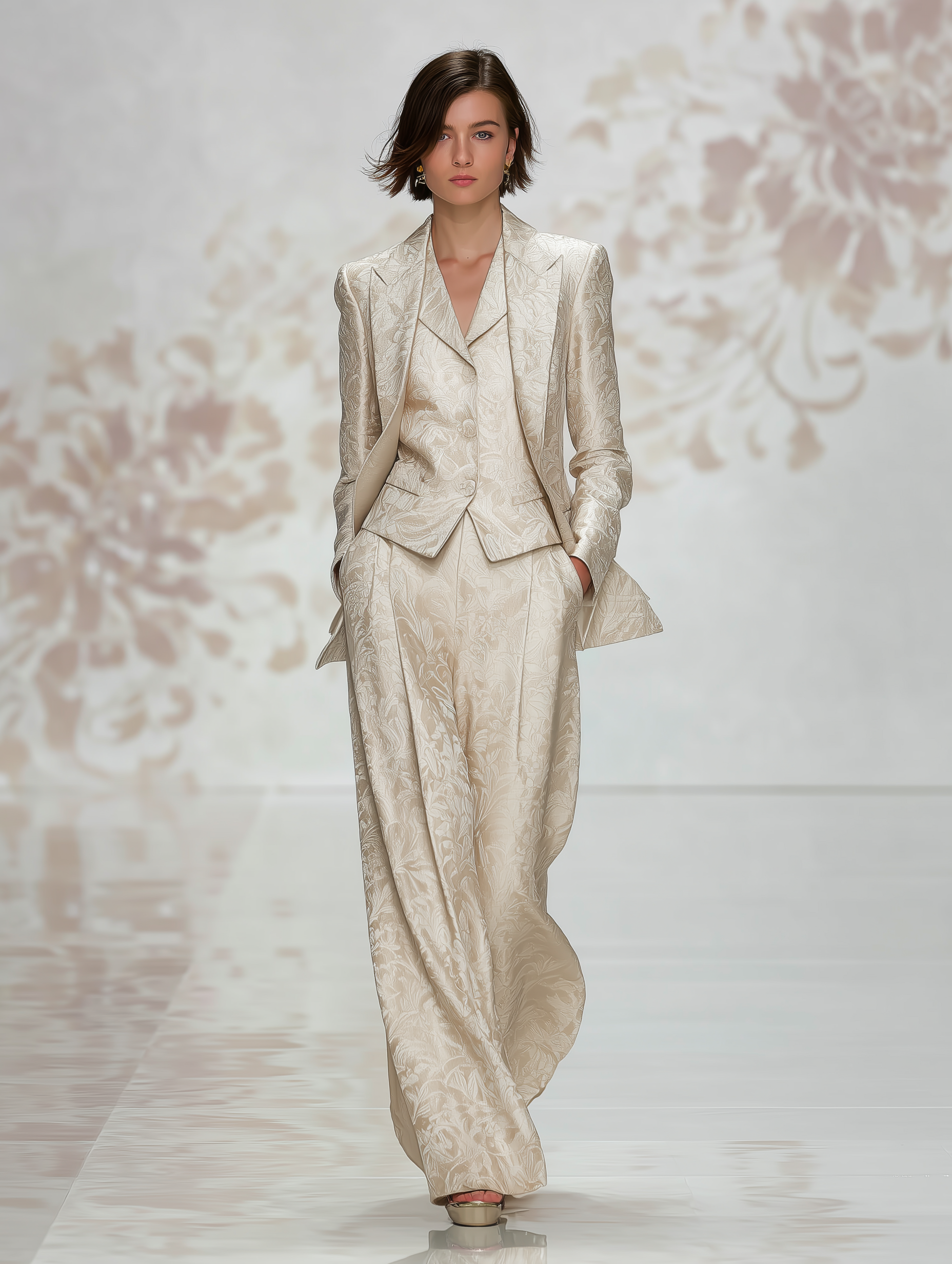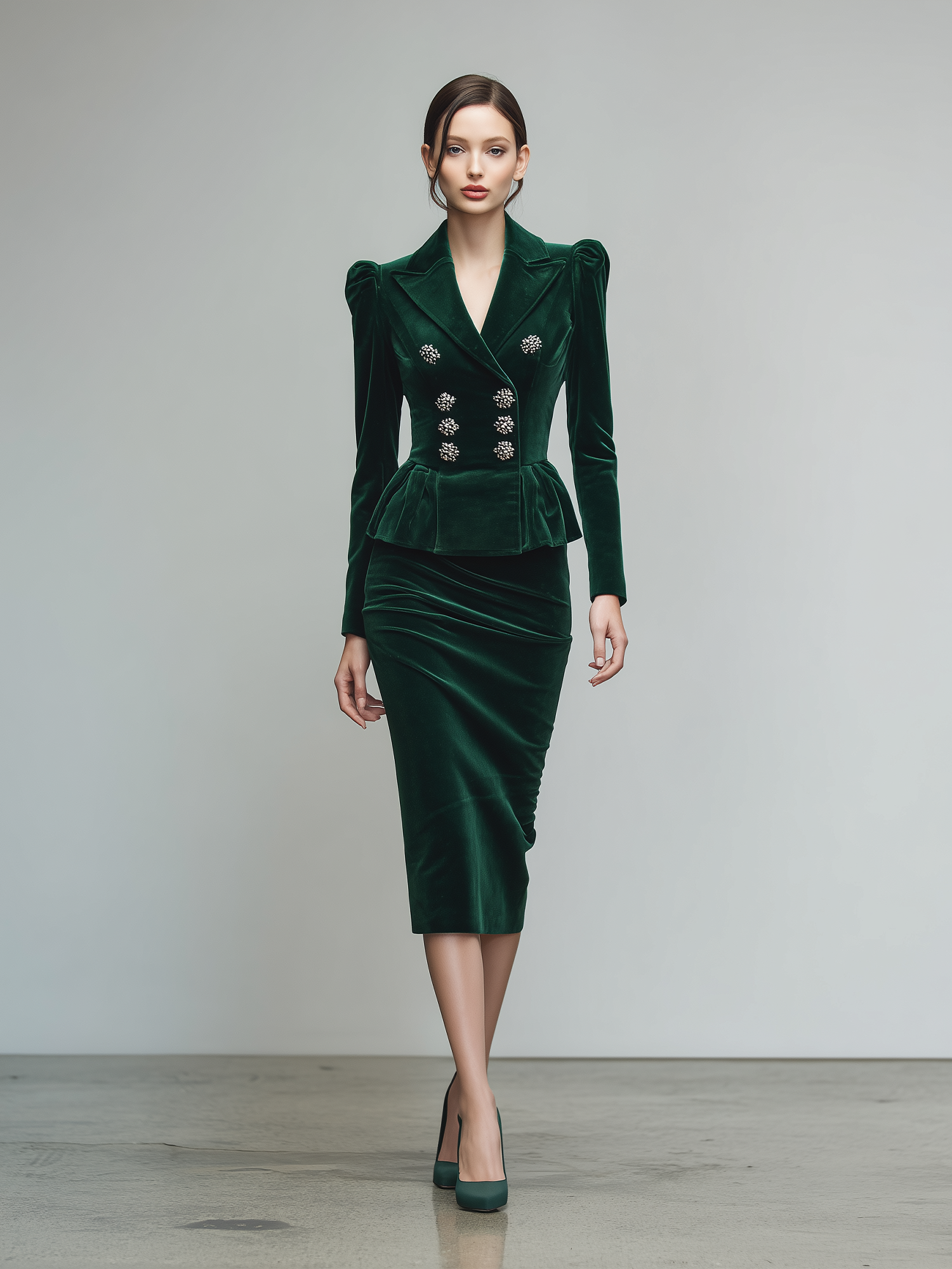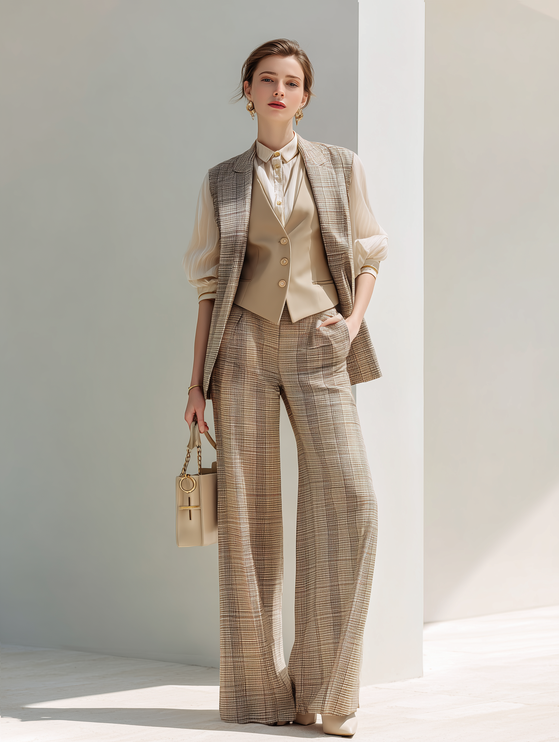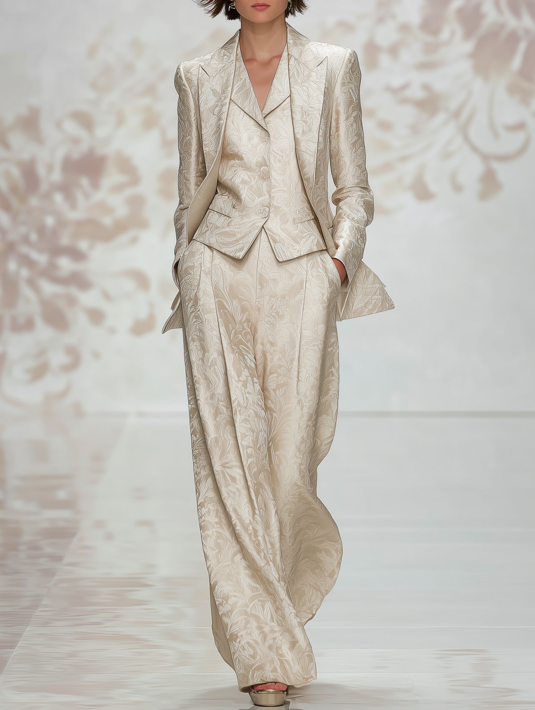 Pair this sophisticated suit with a pair of high heels and delicate jewelry to elevate the look for a night out or a special event. For a more relaxed vibe, match it with elegant ballet flats and a simple clutch bag.