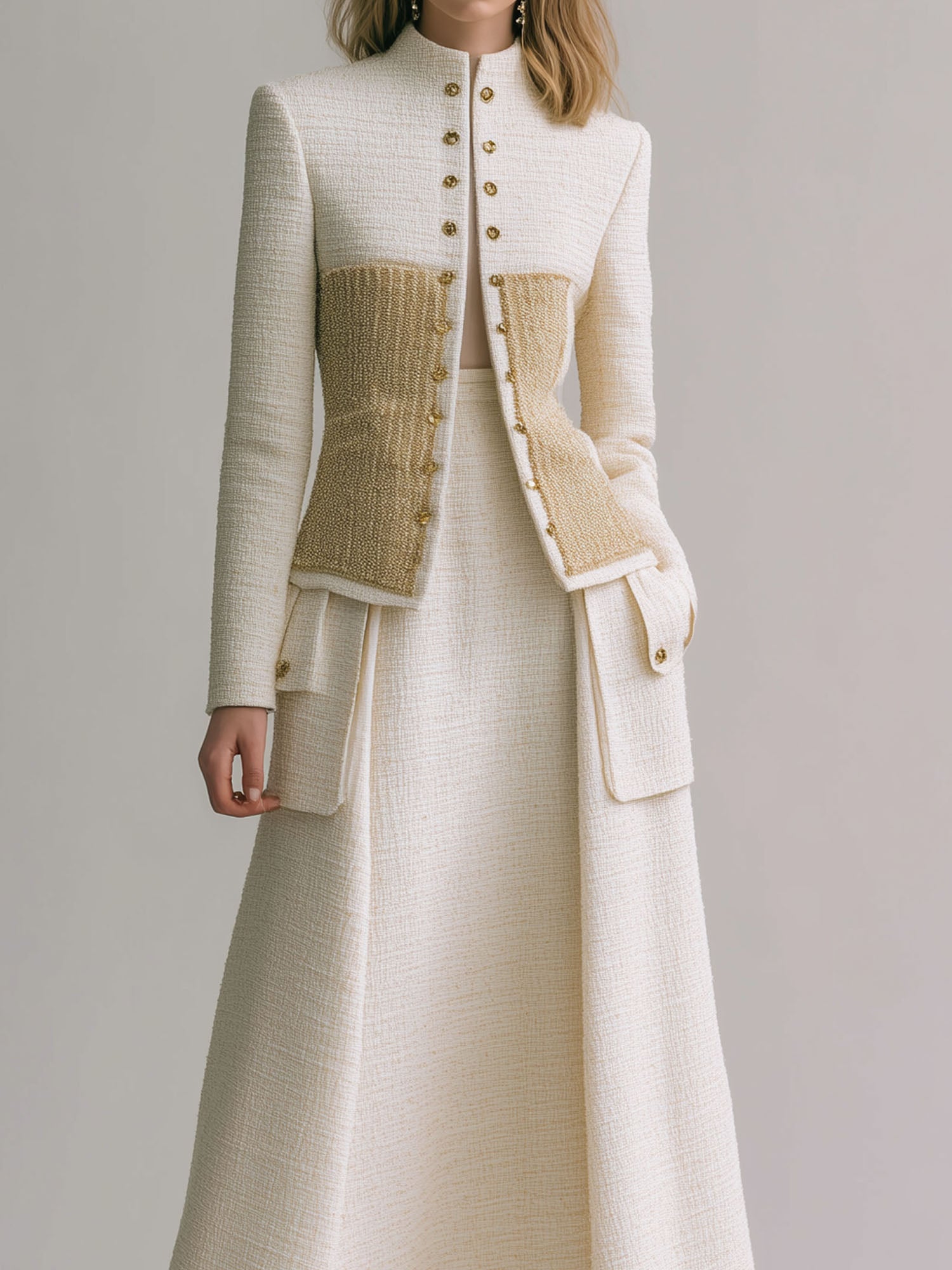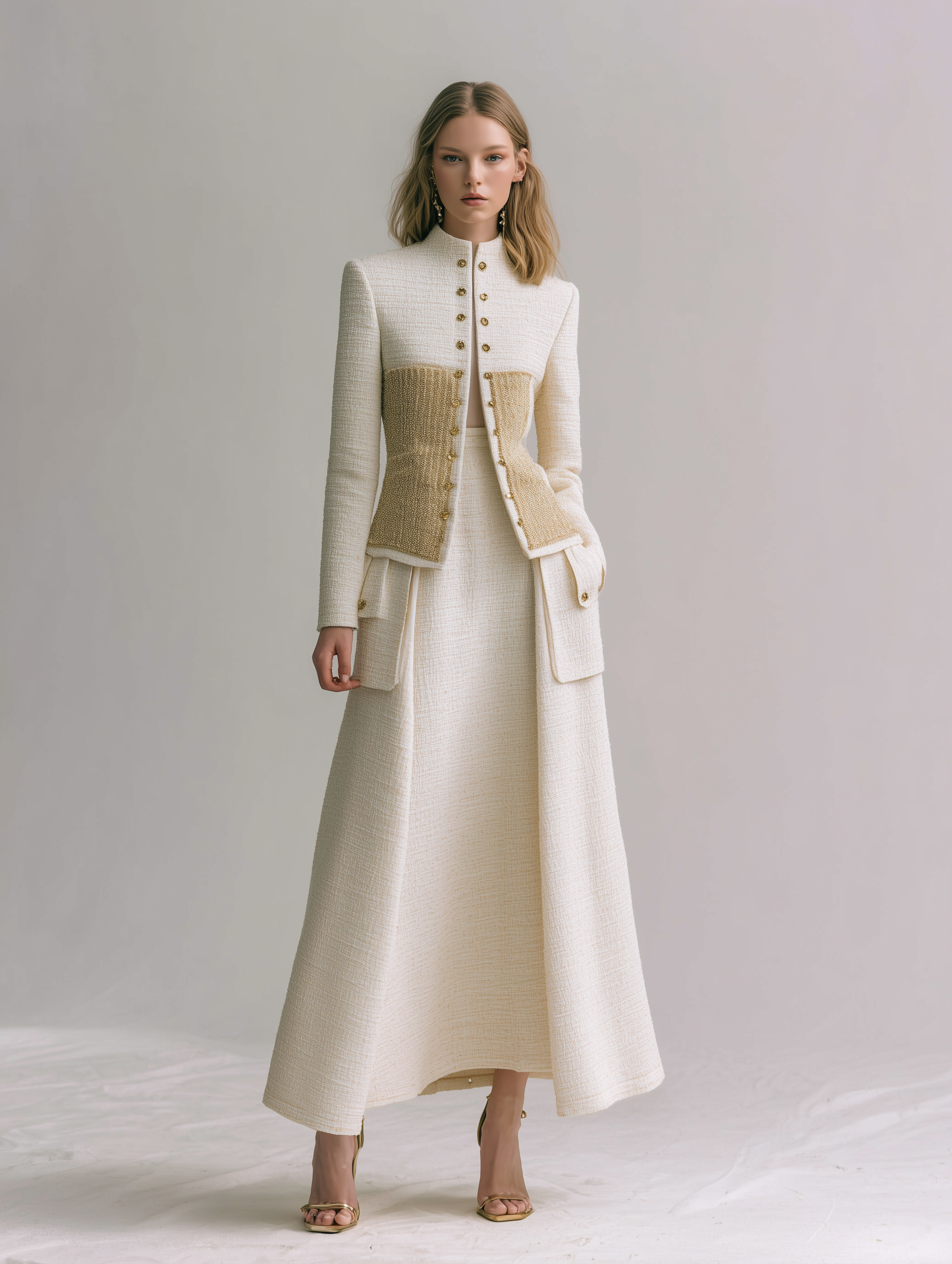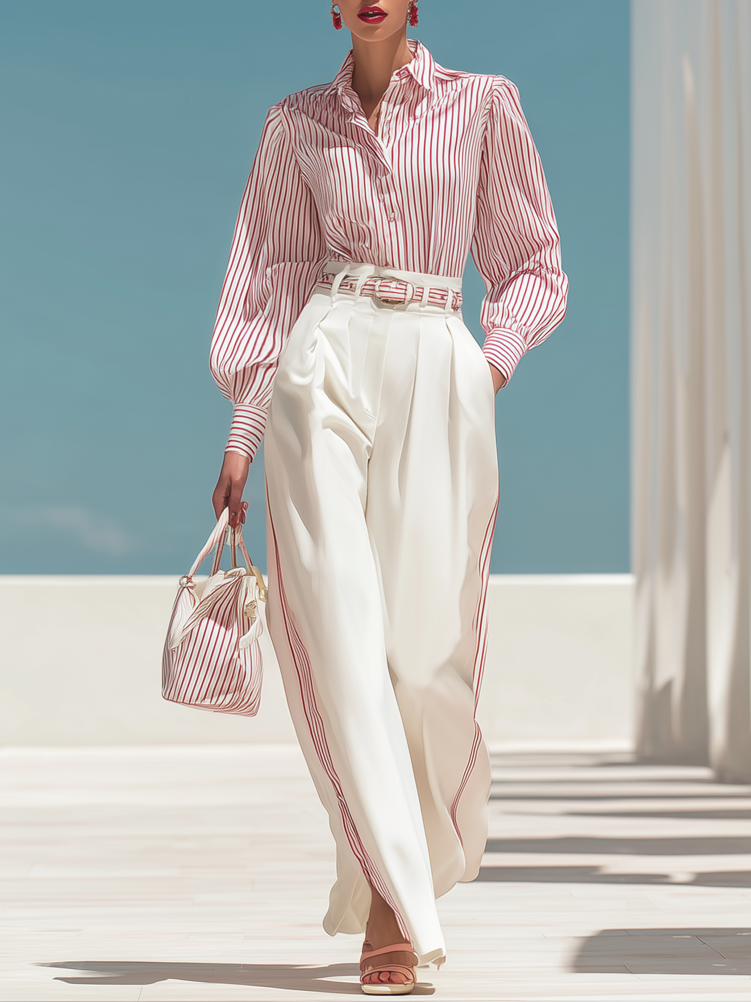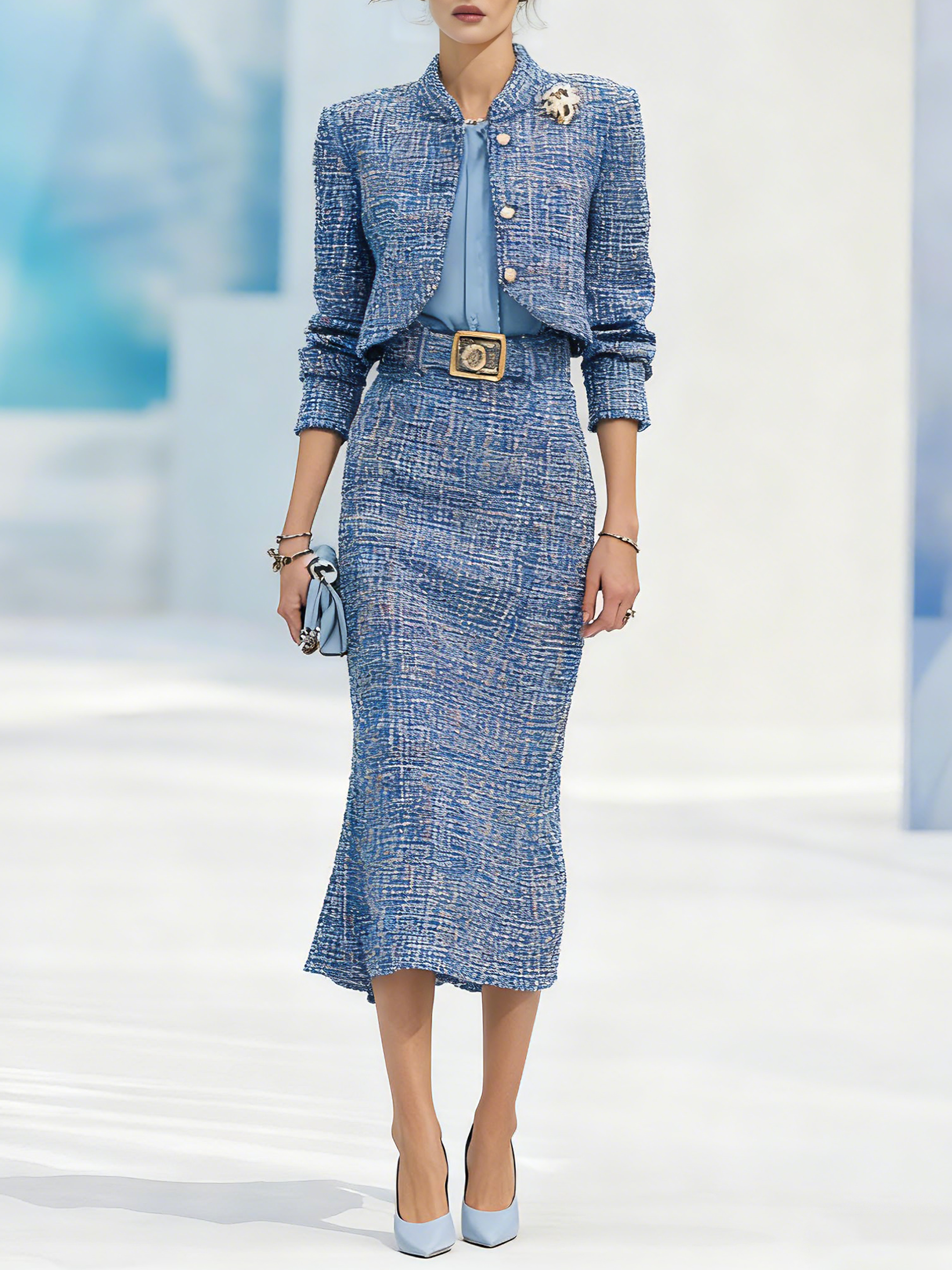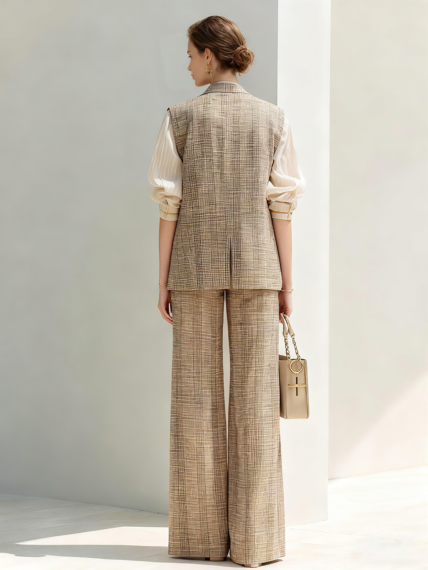 Pair this sophisticated suit with a pair of high heels and delicate jewelry to elevate the look for a night out or a special event. For a more relaxed vibe, match it with elegant ballet flats and a simple clutch bag.