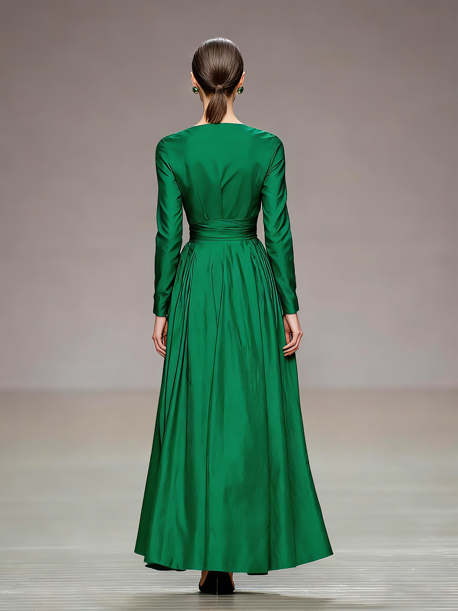 Women's Forest Green One-shoulder Dress With Elegant Waist