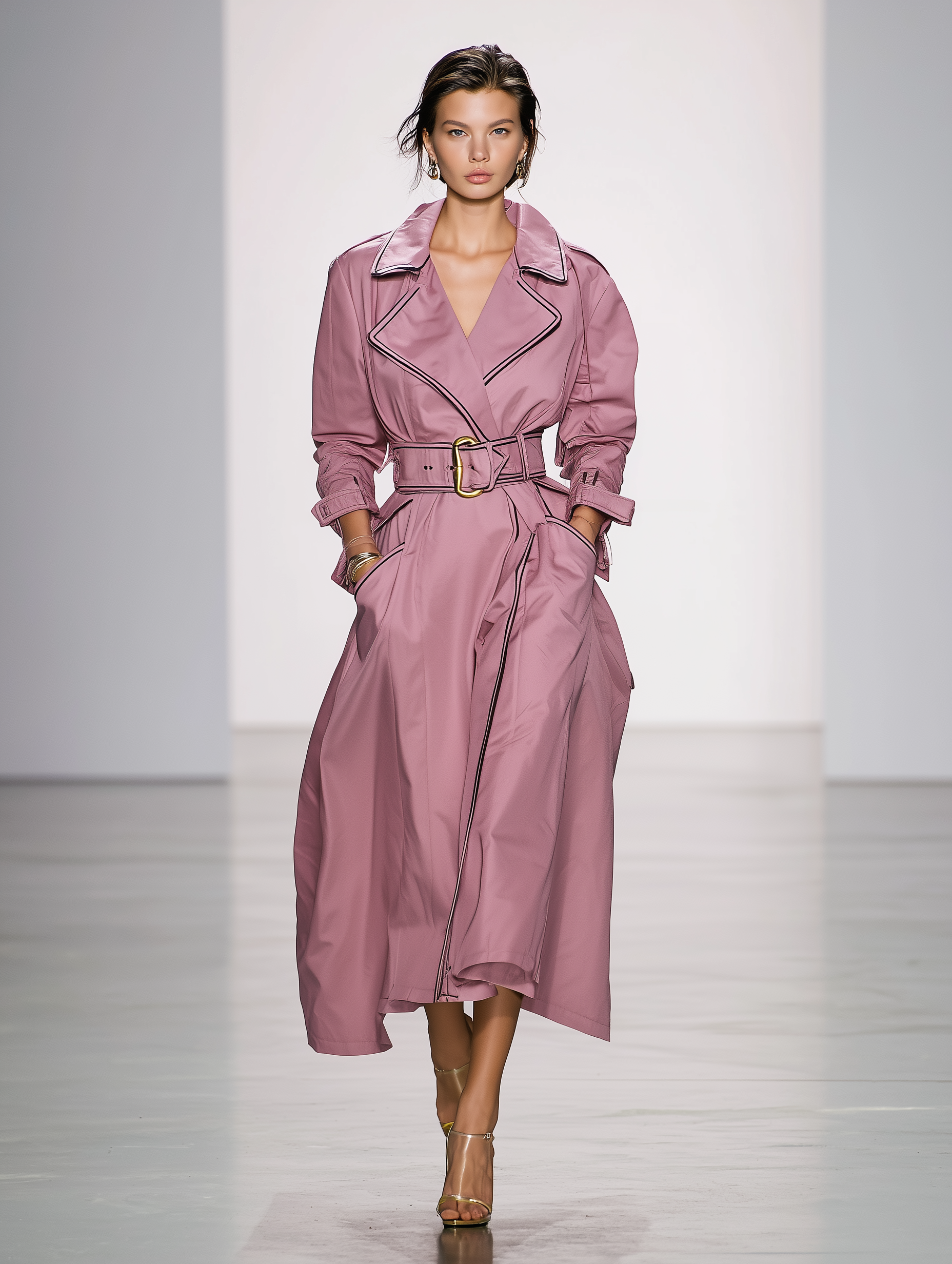Women's Metallic Belt-embellished Color-blocked Trench Coat In Gray-pink Fashion.