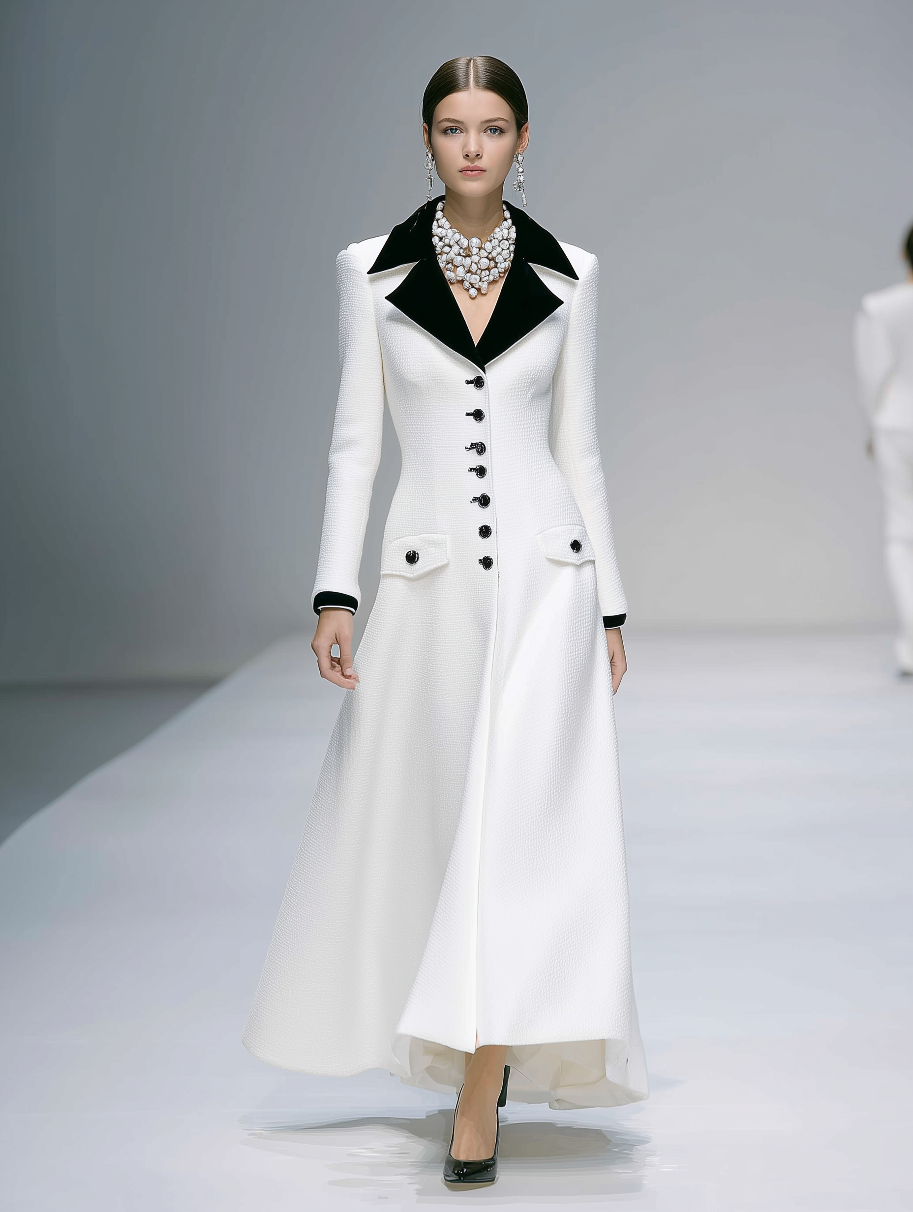 Women's Small Lapel Color-Blocked Pure White Tweed Coat With Slim Waist - Stylish And Elegant