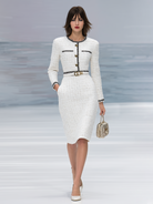 The Elegant White Tweed Long-Sleeve Dress is a must-have for those looking to infuse their wardrobe with timeless elegance. Its versatile design allows it to be worn to both formal and semi-formal occasions, making it a valuable addition to your fashion collection.
