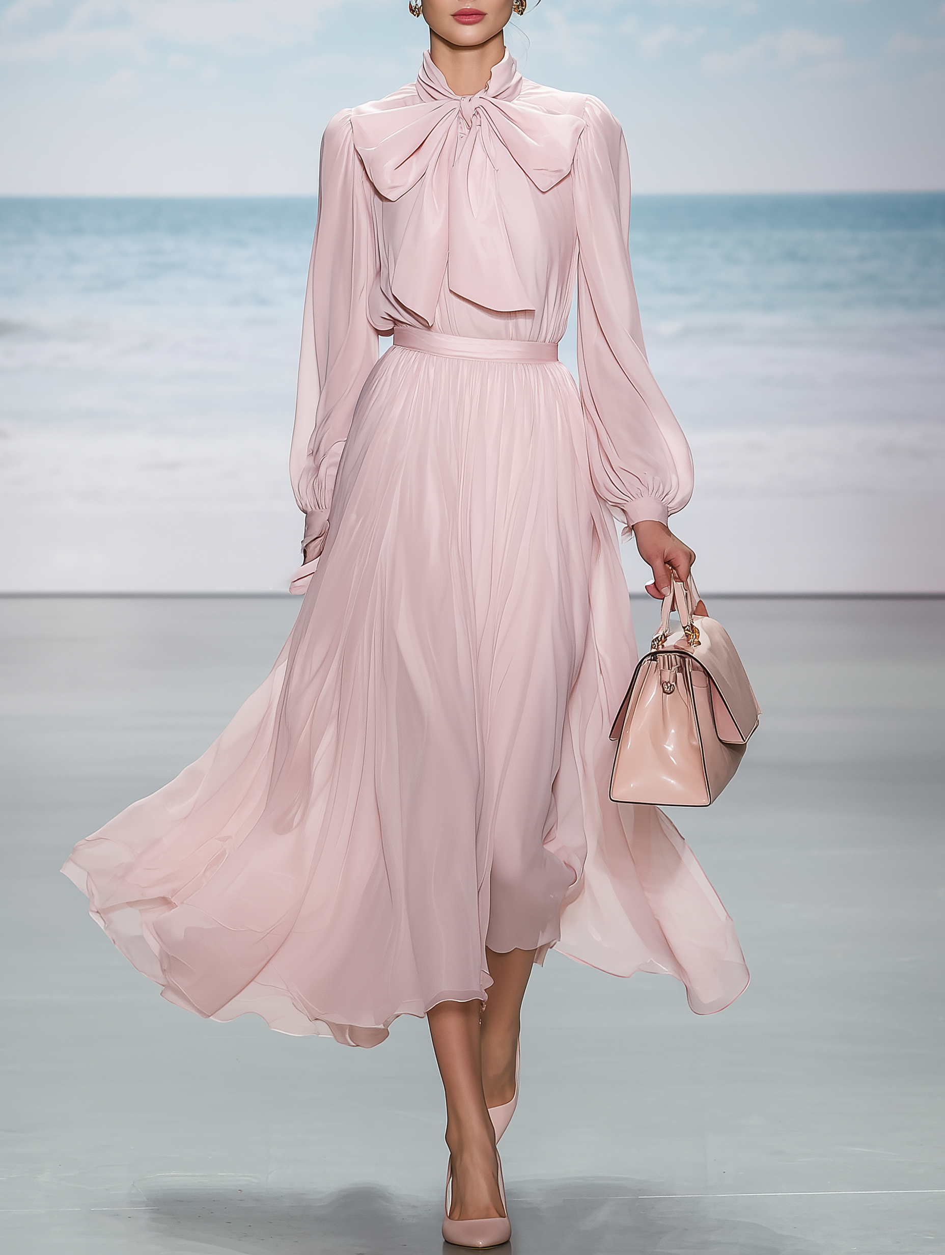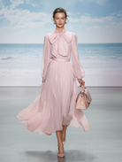 Ladies' Bow-Tie Sash Chic Waist-Cinched Full-Skirt Chiffon Dress