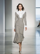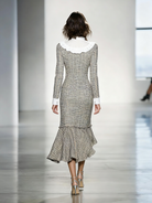 This Ladies Fashionable and Elegant Shirt Collar Fake Two Piece Light Gray Plaid Fishtail Dress is designed to offer a perfect balance of elegance and practicality. Its unique features and stylish design make it a go-to choice for various occasions, from business meetings to casual outings.
