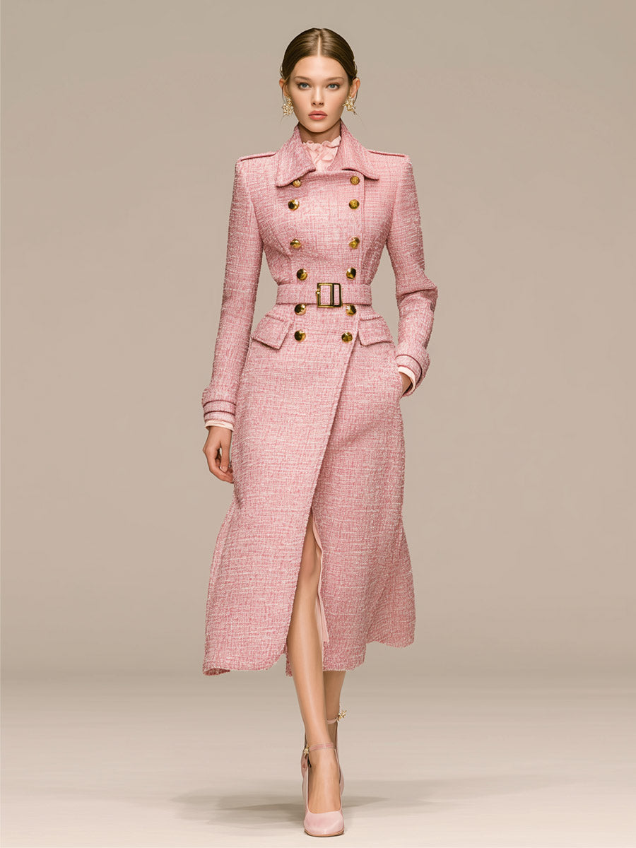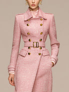 The Light Pink Chanel Style Belted Waist Epaulette Coat is an elegant blend of classic fashion and contemporary style. Featuring a soft, delicate shade of pink, this coat exudes sophistication and timeless elegance. Designed to complement a variety of looks, this coat is perfect for the modern woman who values both style and functionality.