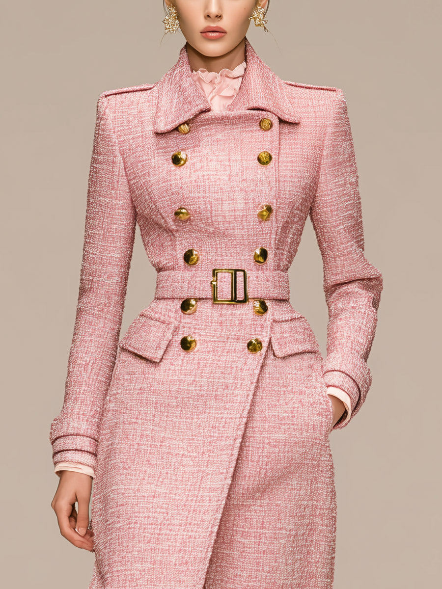 Light Pink Chanel Style Belted Waist Epaulette Coat