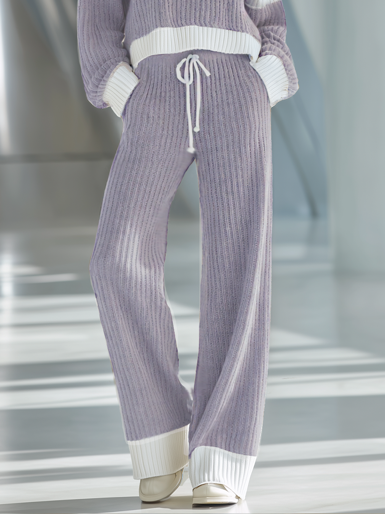 This knitted set is perfect for casual settings and can be paired with white sneakers or ankle boots for a laid-back yet polished look. Add a simple crossbody bag to enhance the outfit without overwhelming it.