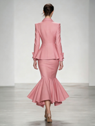 Women's Fashionable And Elegant Pink Fitted Waist Fishtail Suit