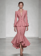 This Women's Fashionable And Elegant Pink Fitted Waist Fishtail Suit is perfect for those who wish to make an elegant entrance. Its unique design and flattering fit make it a must-have piece for an unforgettable look. Suitable for weddings, gala dinners, or any occasion where elegance is a must.