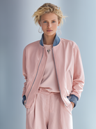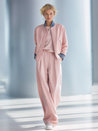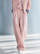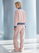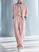 Women's fashionable casual pink patchwork jacket and wide-leg pants set
