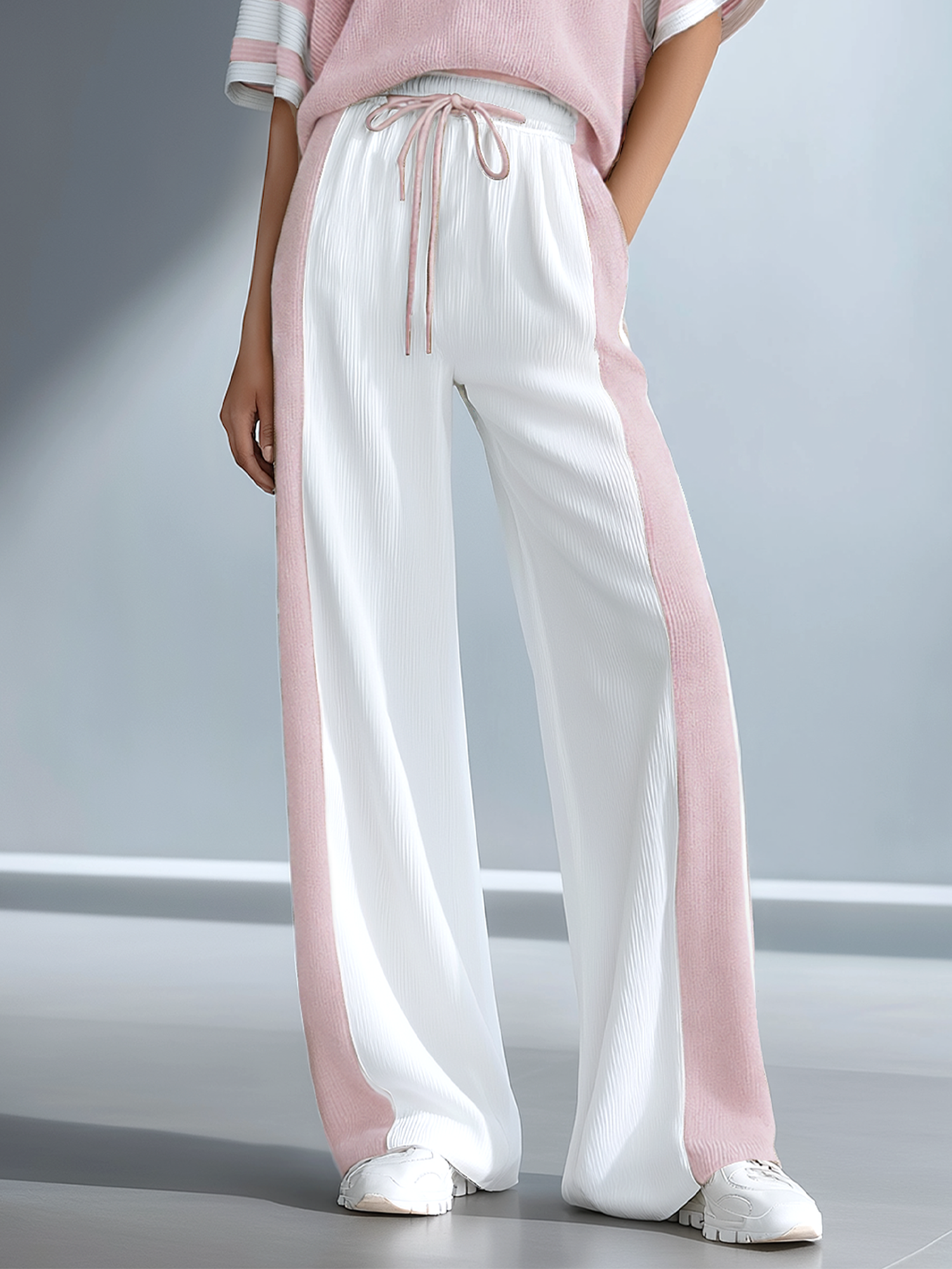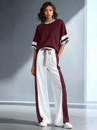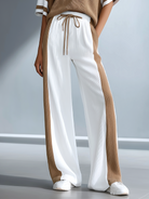 The Women's Stylish Casual Brown Color-block Short-sleeved Knitted Top And Trousers Set is a chic and versatile ensemble perfect for any casual occasion. The set includes a short-sleeved top with a standout color-block design and matching trousers. Crafted from soft, high-quality knit fabric, this ensemble combines comfort and style effortlessly.