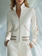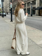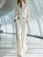 Women's Stylish Casual White Long-sleeved Top And Trousers Set
