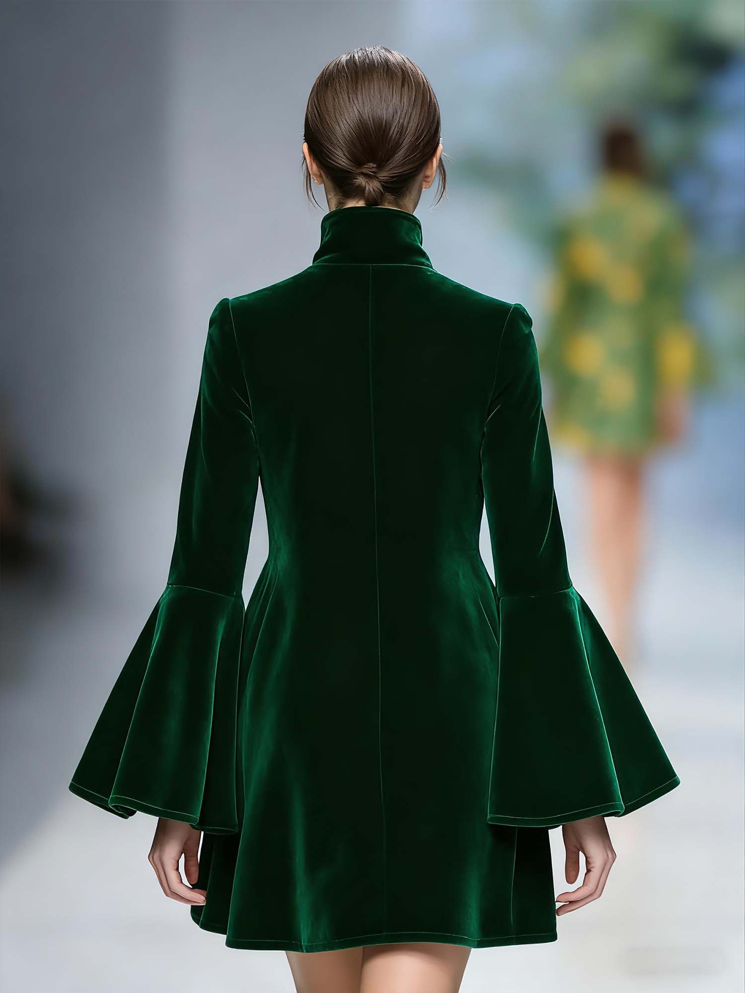 This Dark Green Short Skirt Fashionable Stand Collar Velvet Jacket is an exquisite blend of elegance and modern style. Crafted from luxurious velvet, it features a deep dark green hue that adds a rich and sophisticated touch to any outfit. The jacket boasts a trendy stand collar that highlights the neck, adding an element of chic sophistication.