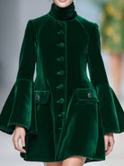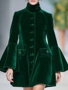 The Dark Green Short Skirt Fashionable Stand Collar Velvet Jacket is perfect for those who wish to make a bold fashion statement without compromising on elegance. Its rich texture and deep color make it a standout piece in any wardrobe, ideal for both formal and casual occasions.