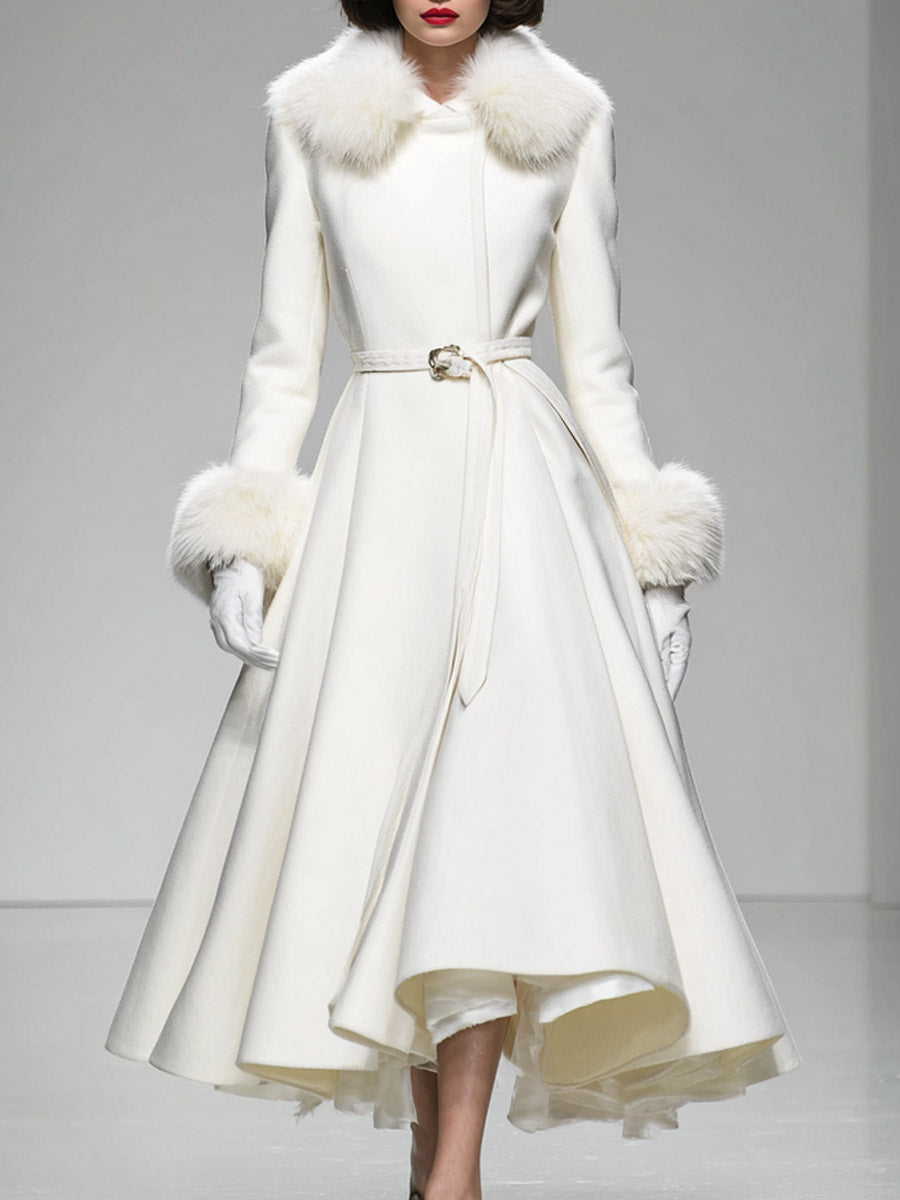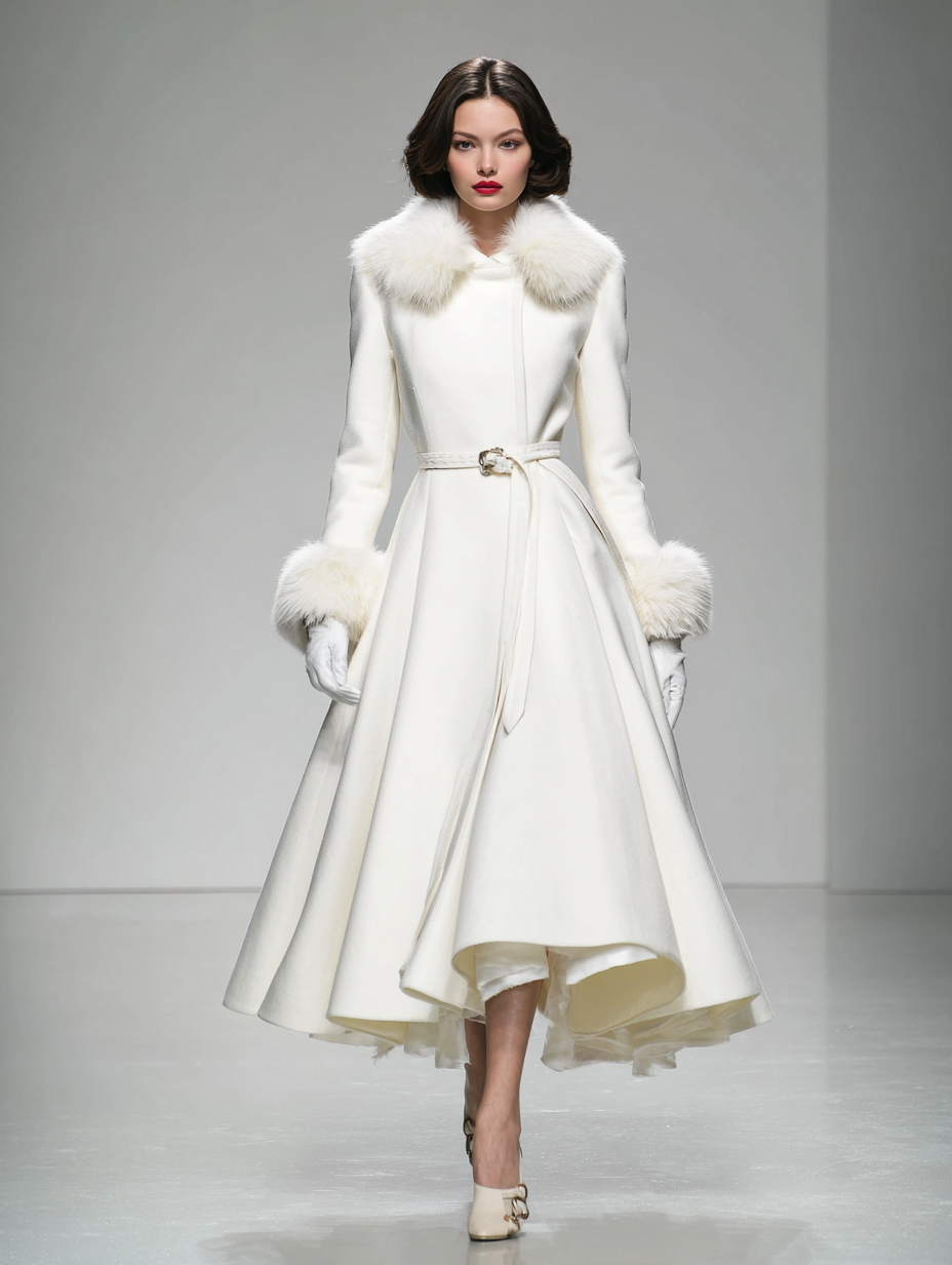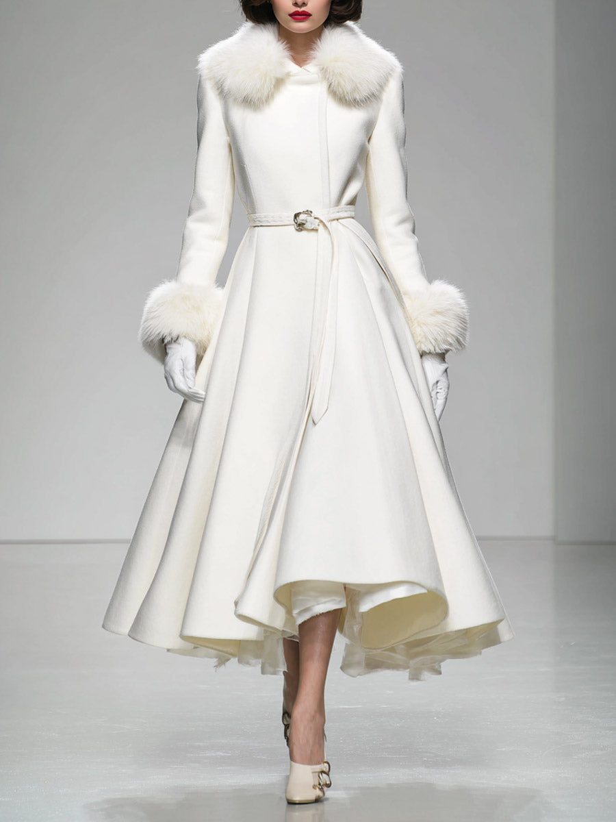 Our Vanilla White Dress with Fur Collar Trim Coat is a versatile and elegant choice for those looking to make a refined statement. Its classic color palette and luxurious details ensure you exude confidence and style, no matter the occasion.
