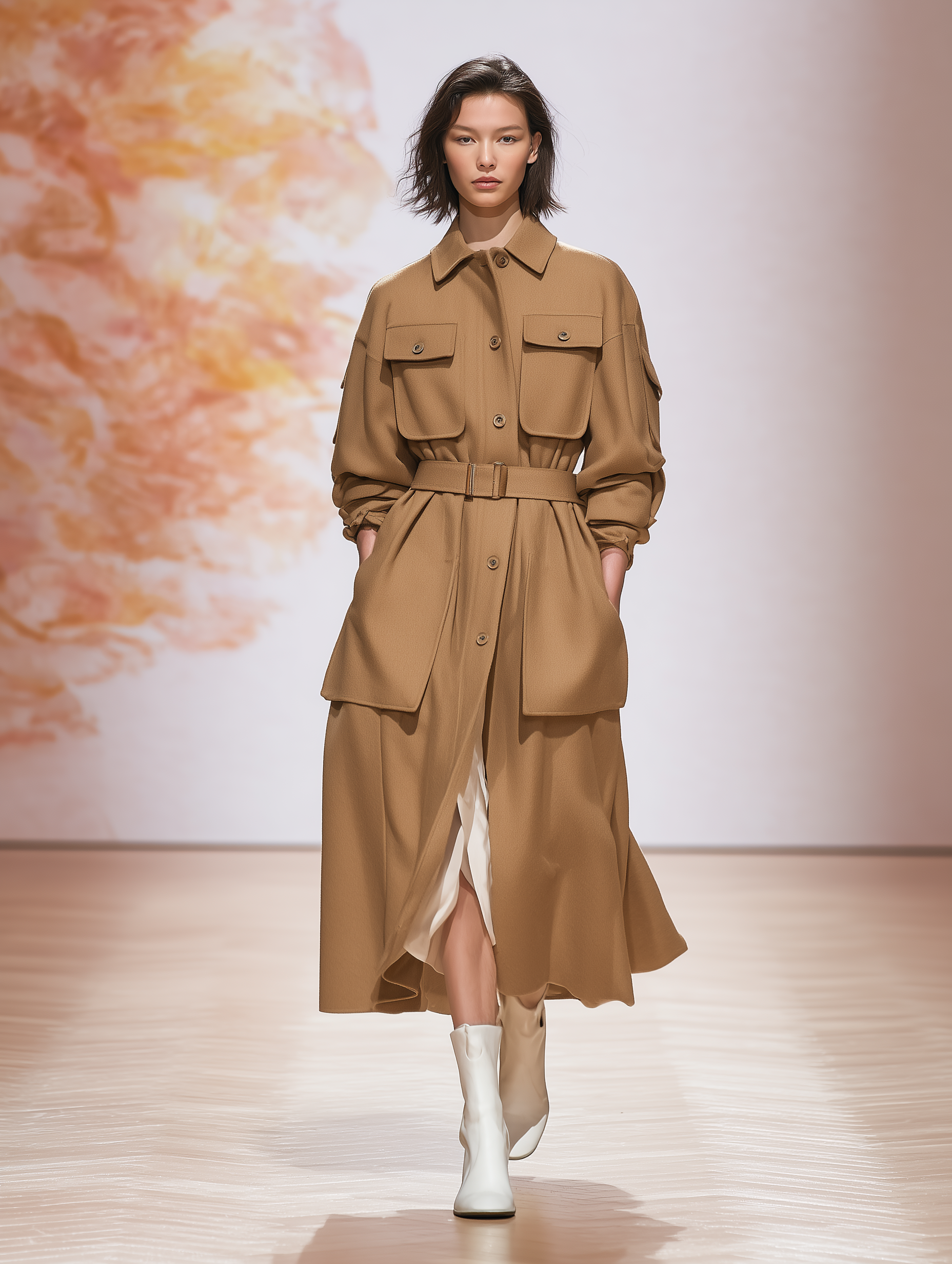 • Pocket Decoration: Decorative pockets add a touch of elegance and break the monotony of the solid brown color, enhancing the overall aesthetic.