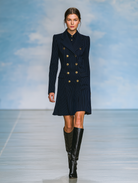 Introducing the Women's Navy Blue Striped Mid-length Slim-fit Fashionable Coat, perfect for those who adore a blend of classic style and modern charm. This coat features a sophisticated striped pattern in navy blue, adding a touch of elegance to your wardrobe.