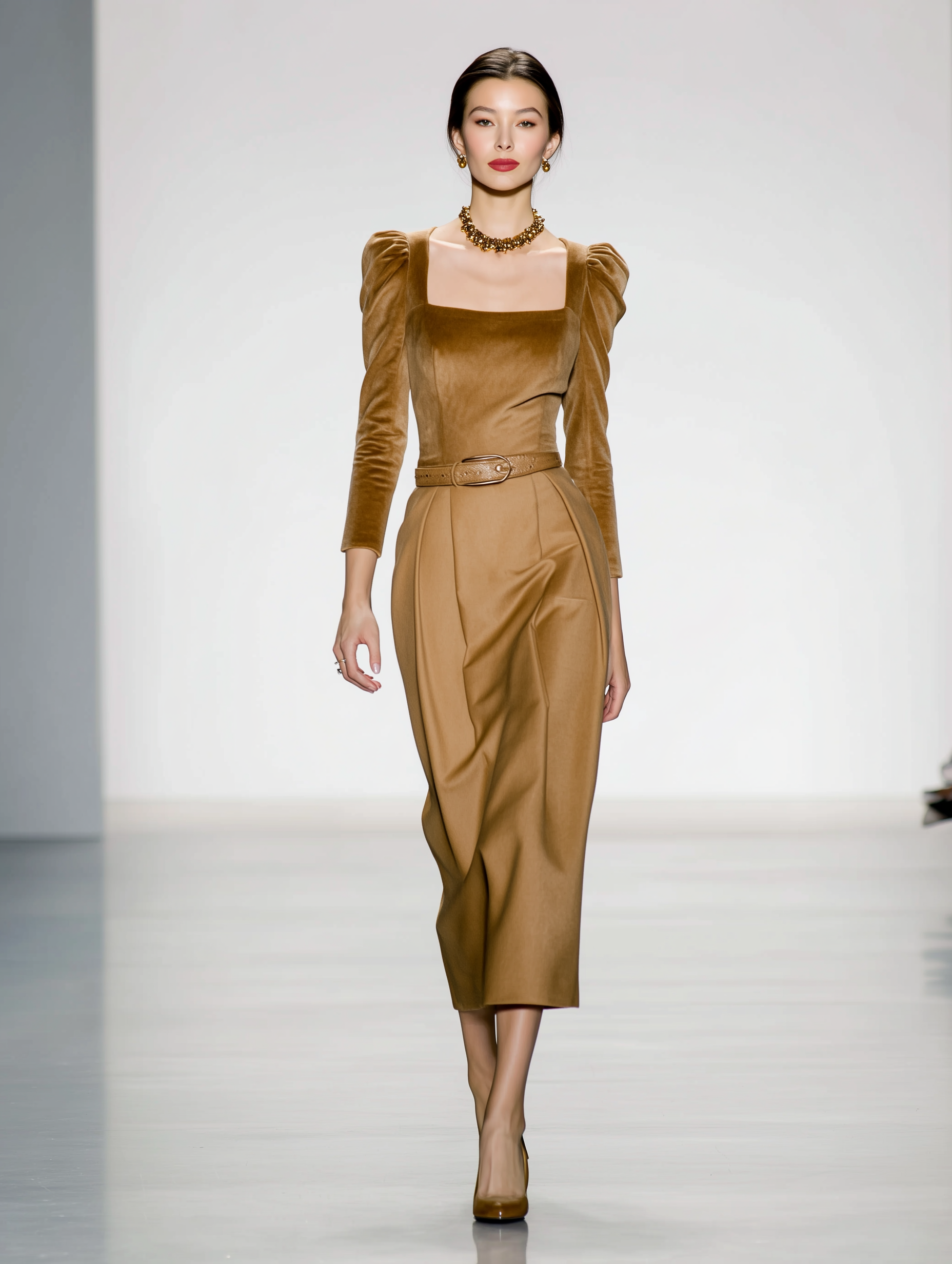 • Pencil Skirt Design: Its pencil skirt shape is timeless, offering a form-fitting structure that enhances the wearer's silhouette.