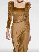 The Women's Bubble Long Sleeve Pencil Skirt Khaki Fashion Simple Waist Dress is a chic and versatile addition to any wardrobe. This dress features a contemporary design with a sleek silhouette that gracefully complements the natural curves of the body. Its khaki color provides a neutral yet sophisticated look, suitable for both office settings and casual outings.