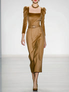 Women's Bubble Long Sleeve Pencil Skirt Khaki Fashion Simple Waist Dress