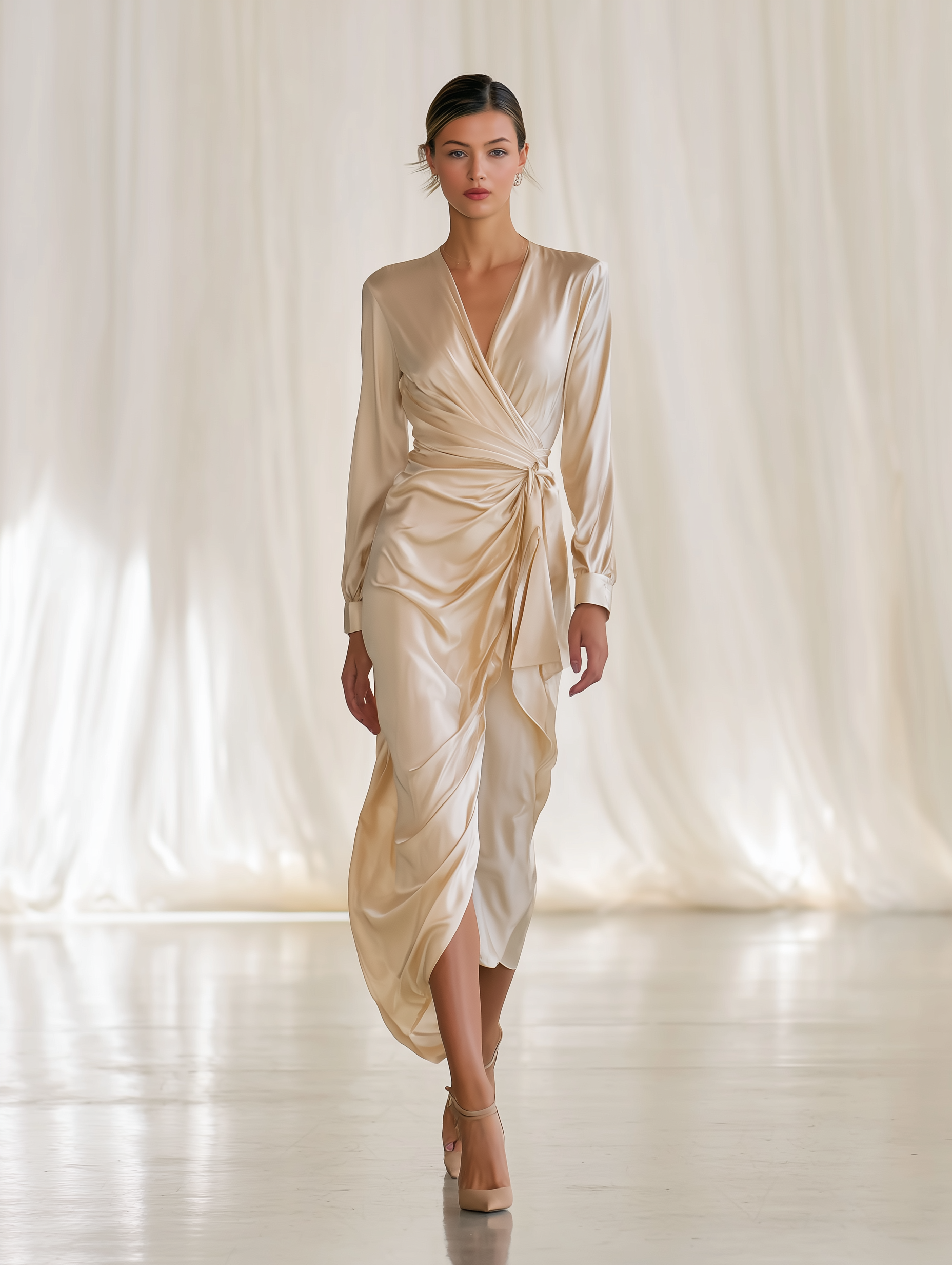 The Women's Champagne Gold Waist Pleated Fashionable Simple Shirt Dress is a stunning blend of elegance and sophistication. Crafted from high-quality materials, this dress offers both style and comfort. The champagne gold color adds a luxurious touch, making it perfect for special occasions and outings.