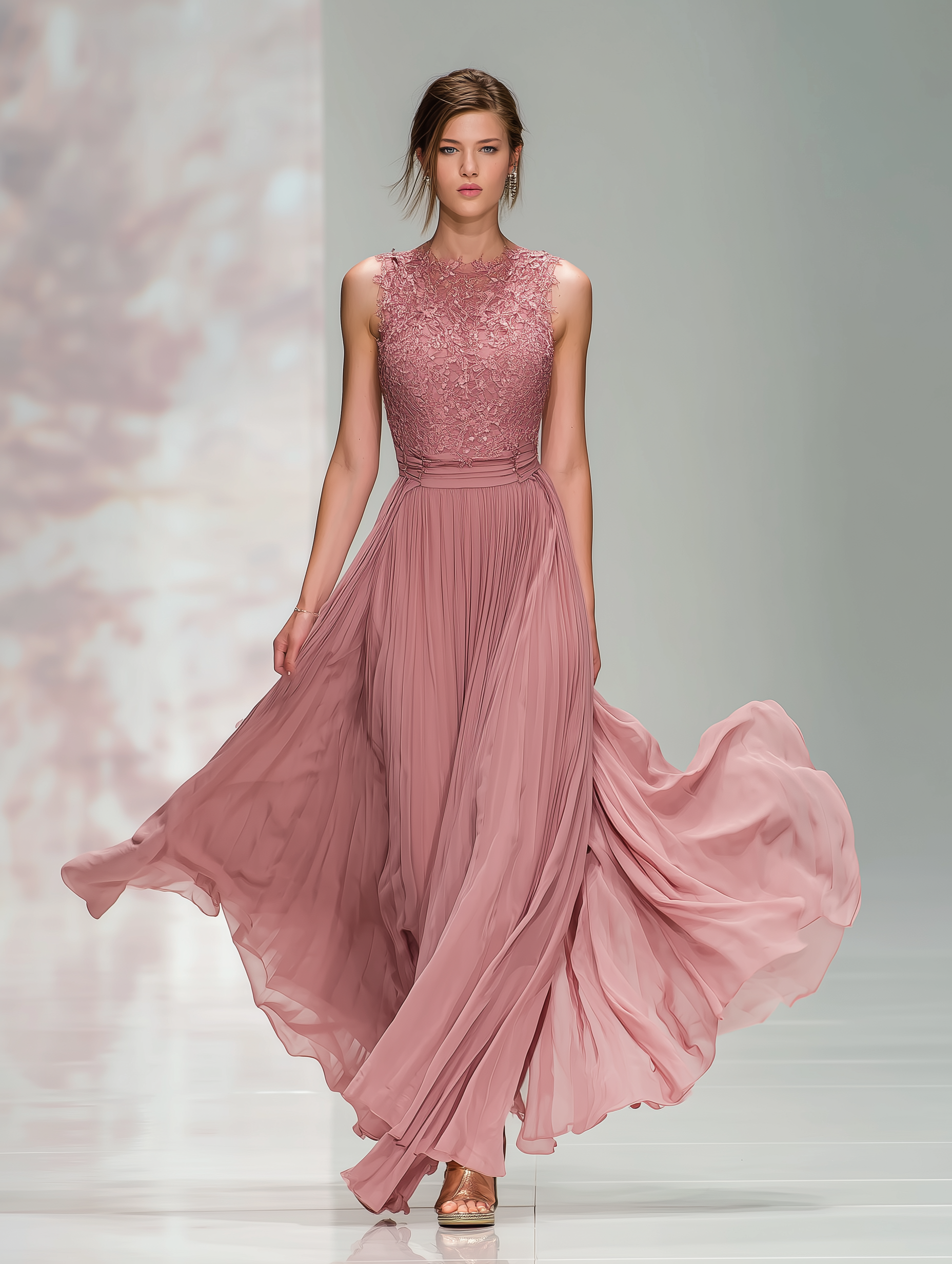 The Women's Lace Splicing Sleeveless Long Pleated Dress in Gray and Pink is the perfect choice for those seeking a blend of modern elegance and feminine charm. Its high-quality materials, intricate lace details, and versatile color make it a valuable addition to any fashion-forward wardrobe.