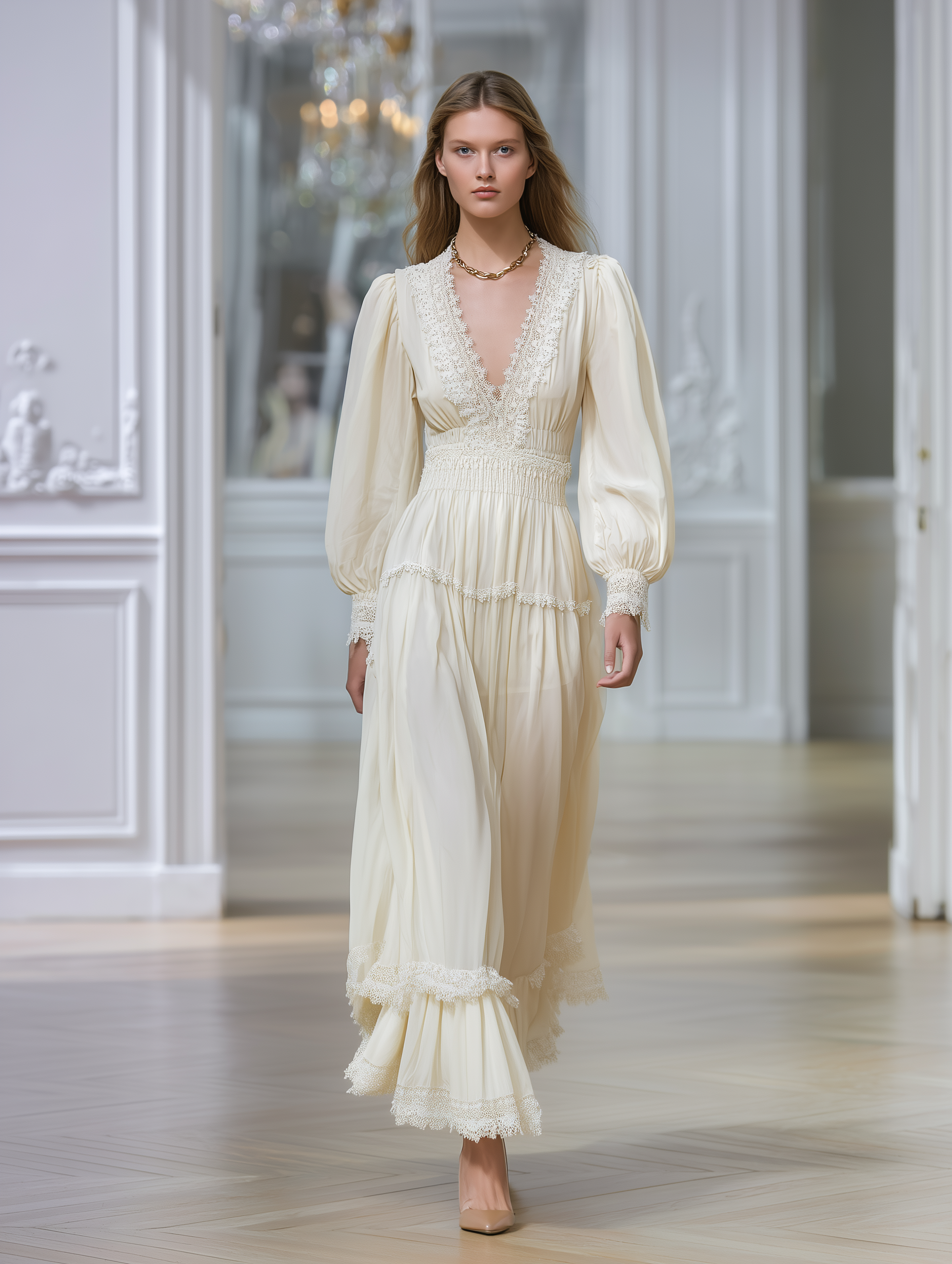 - Long Sleeves: Provides coverage while maintaining a romantic and chic appearance.