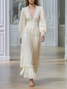 Women's Lace V-Neck Lace Long Sleeve French Romantic Dress