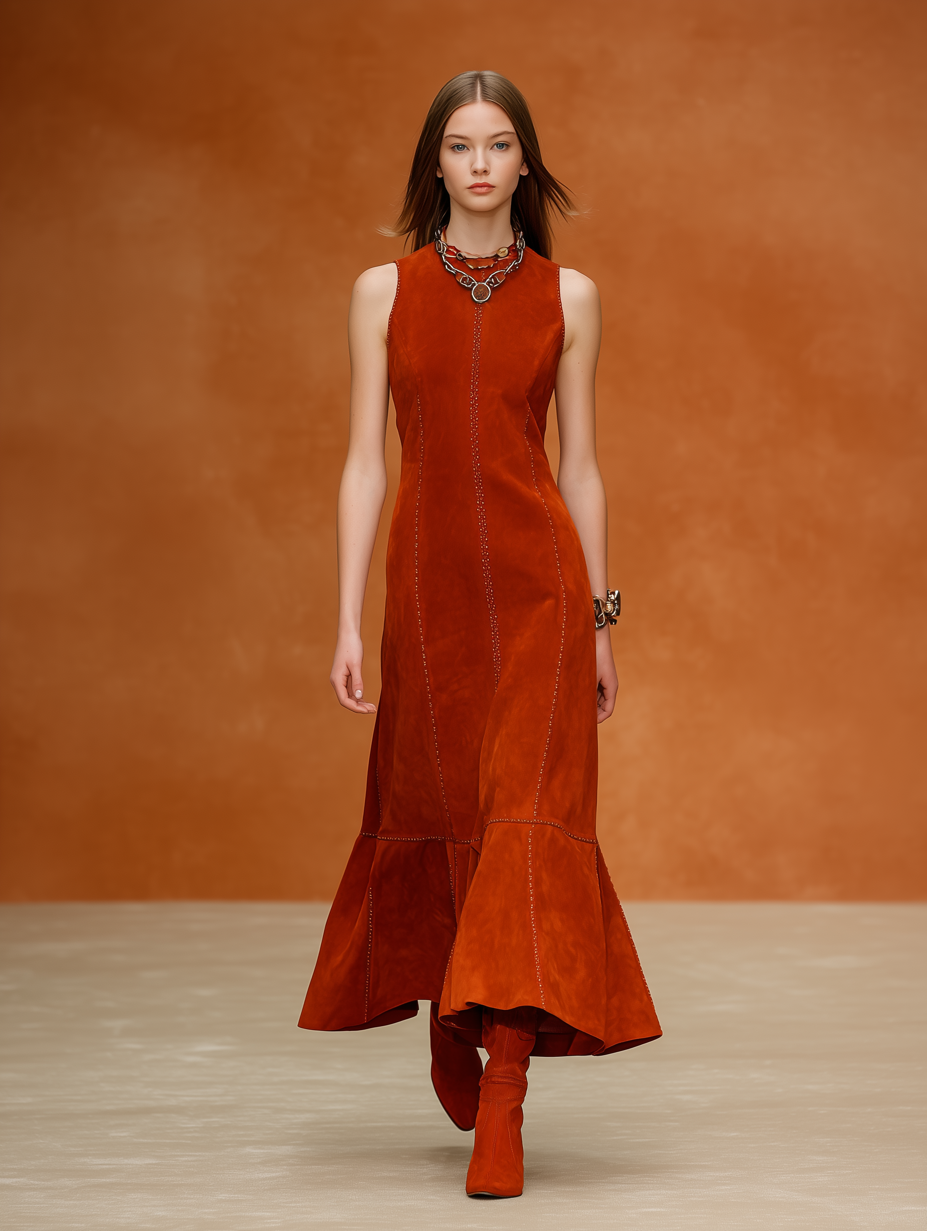 This Women's Sleeveless Long Fashionable Casual Open-stitched Orange Fishtail Skirt is a striking piece that embodies both elegance and modern fashion. Made from high-quality, breathable fabric, this skirt guarantees comfort while keeping you in style. The vibrant orange color adds a pop of liveliness to your wardrobe, perfect for making a bold fashion statement.