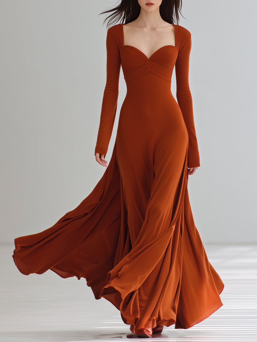Women's Slim-fit Stretch Orange-red A-line Elegant And Fashionable Long Dress