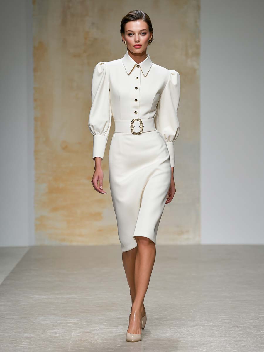 • Elegant Design: Features classic puff sleeves that add a touch of vintage flair, combined with a sleek silhouette that complements the body shape.