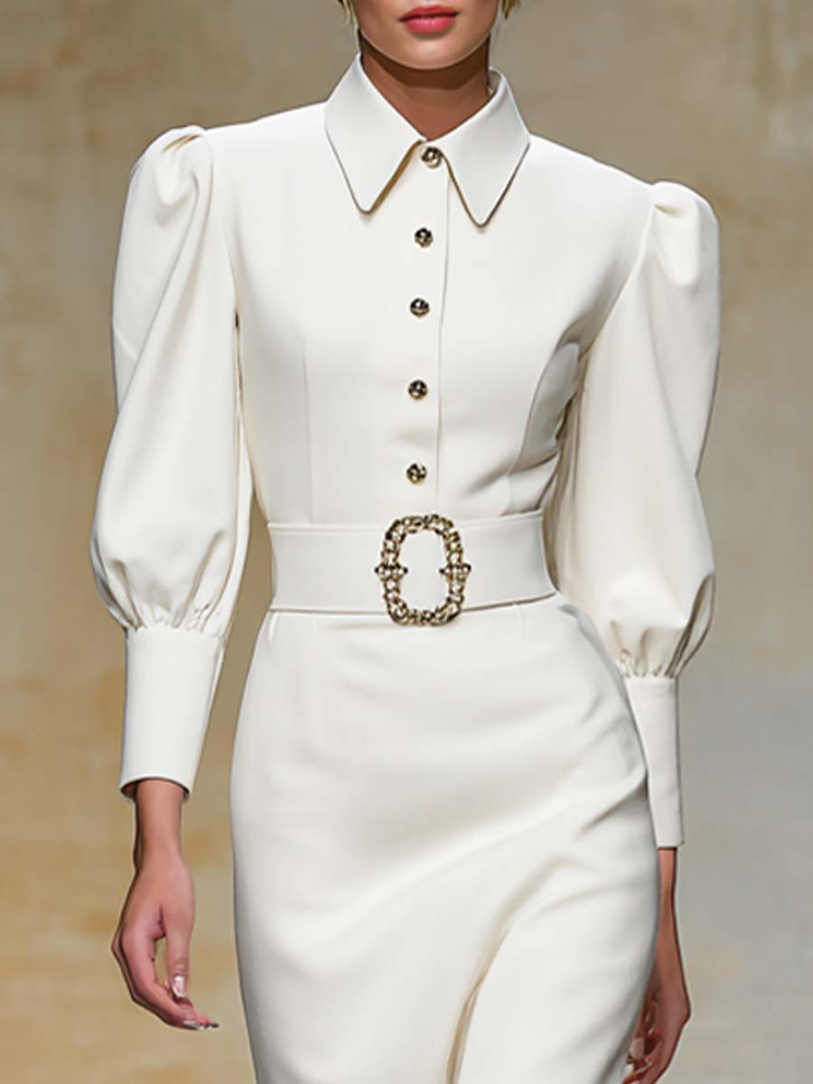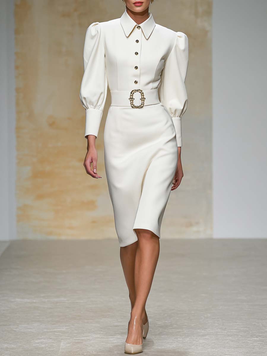 Women's Solid Color Office Puff Sleeve Elegant Midi Dresses