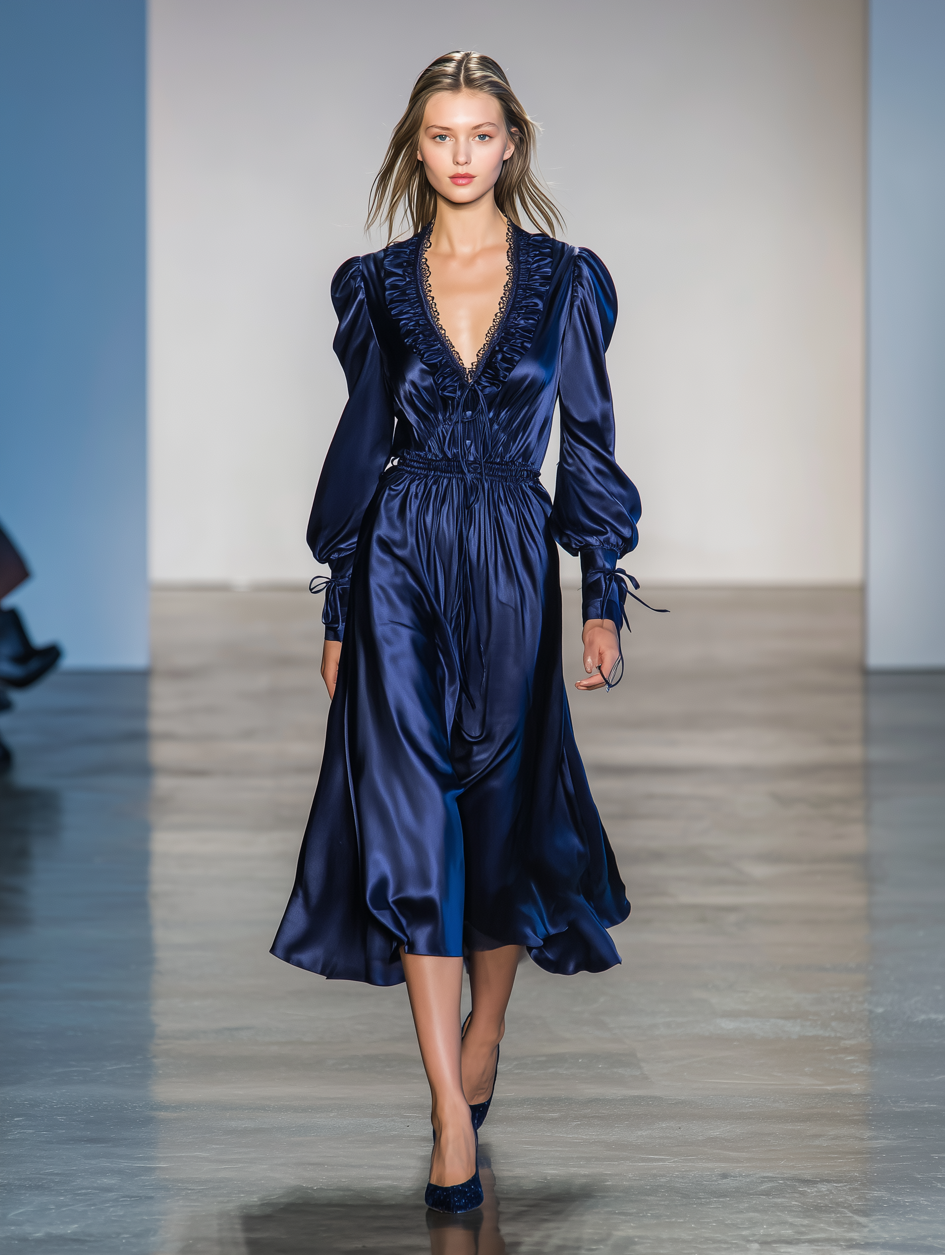 Explore the timeless elegance of our Women's Solid Color V-Neck Elegant Puff Sleeve Midi Dress. Designed for the modern woman, this dress combines sophistication with comfort, making it an essential addition to any wardrobe.