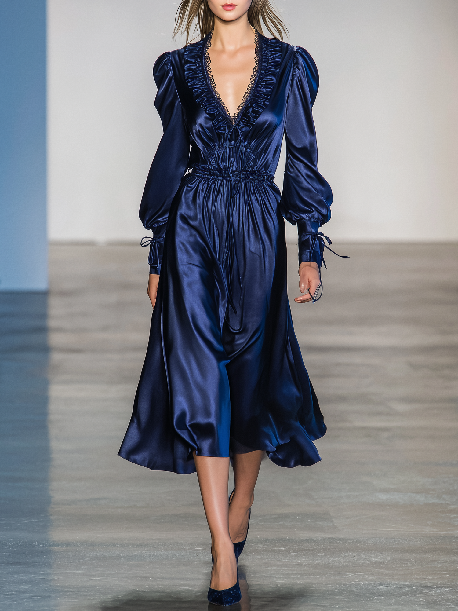 In summary, this Women's Solid Color V-Neck Elegant Puff Sleeve Midi Dress is designed to offer timeless elegance and versatility. Perfect for any occasion, it allows you to express your unique style effortlessly.
