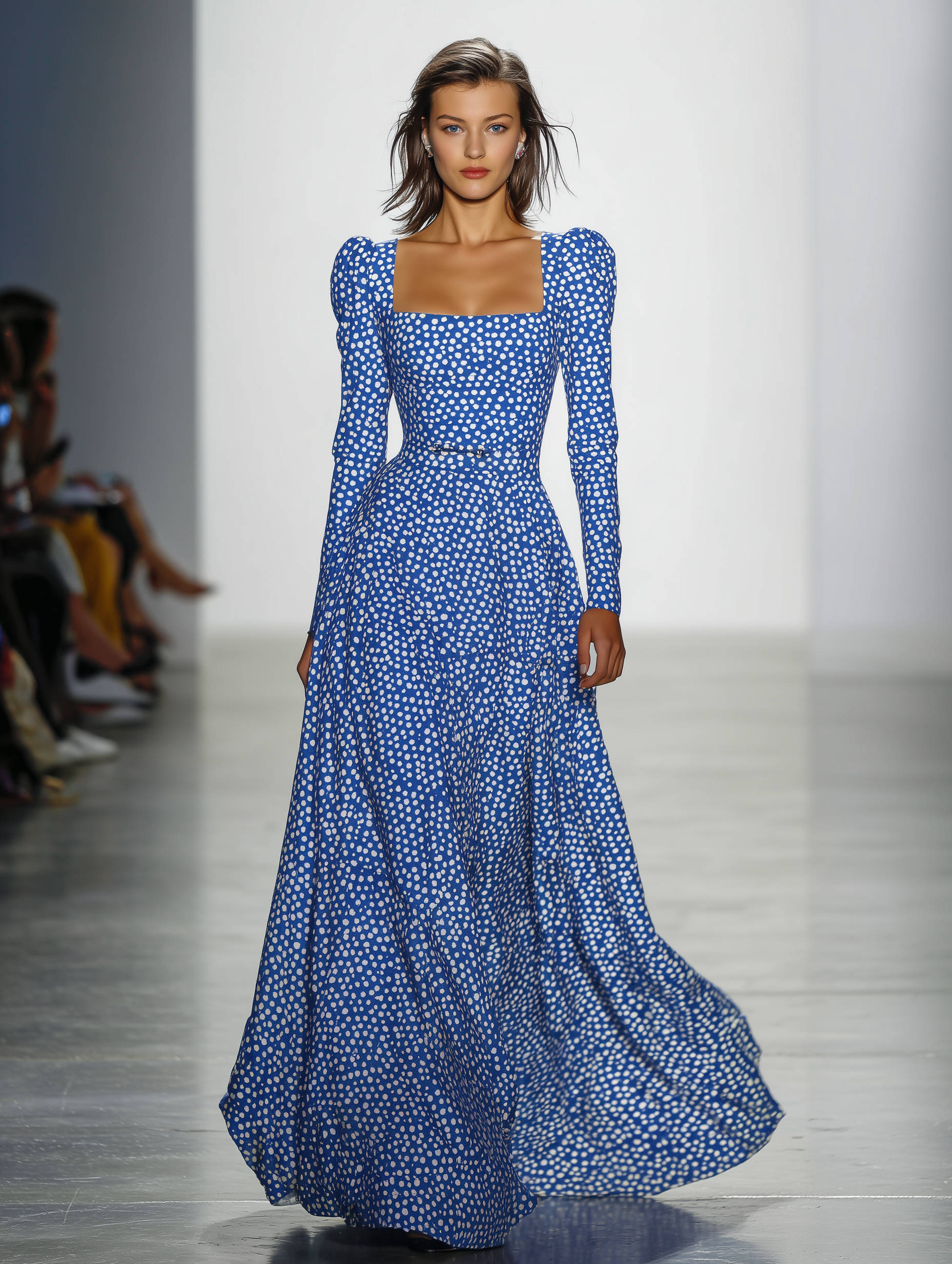 The Women's Square Neck Polka Dot Print Long Sleeve Maxi Dress is a must-have for any fashion-conscious wardrobe. Its classic design elements combined with a modern twist ensure that you'll look and feel fabulous on any occasion. Whether you're attending a garden party or a formal dinner, this dress will provide the perfect balance of style and comfort.