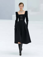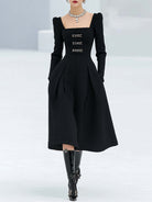 Women's Square Neck Woolen Umbrella Skirt Dress