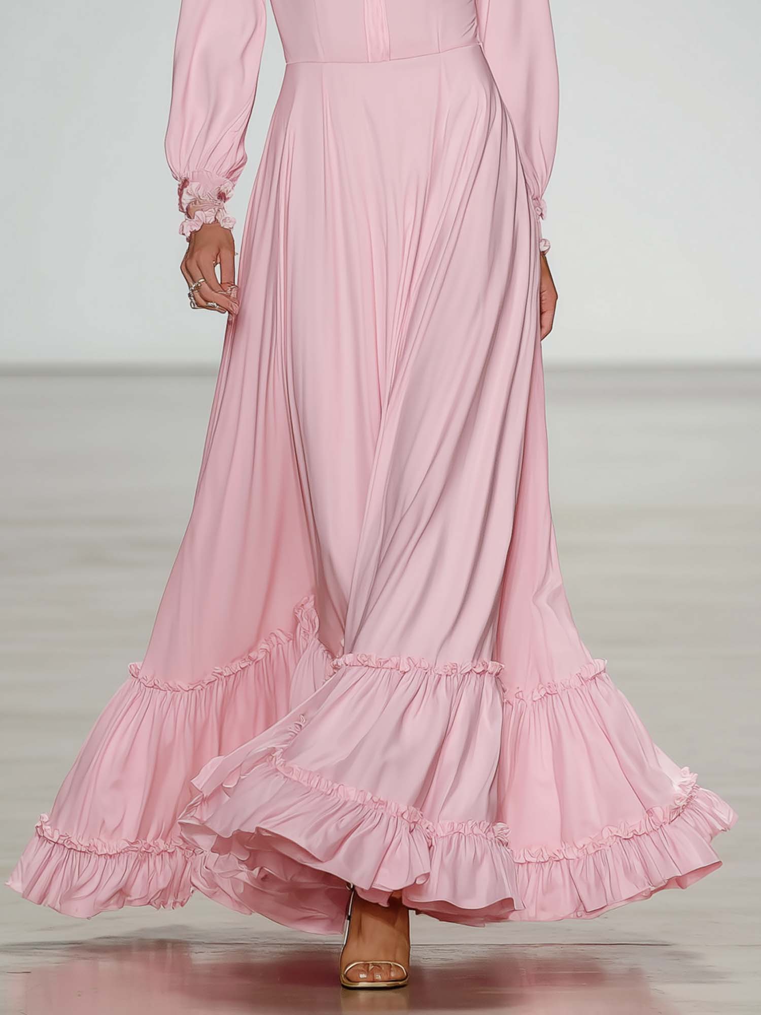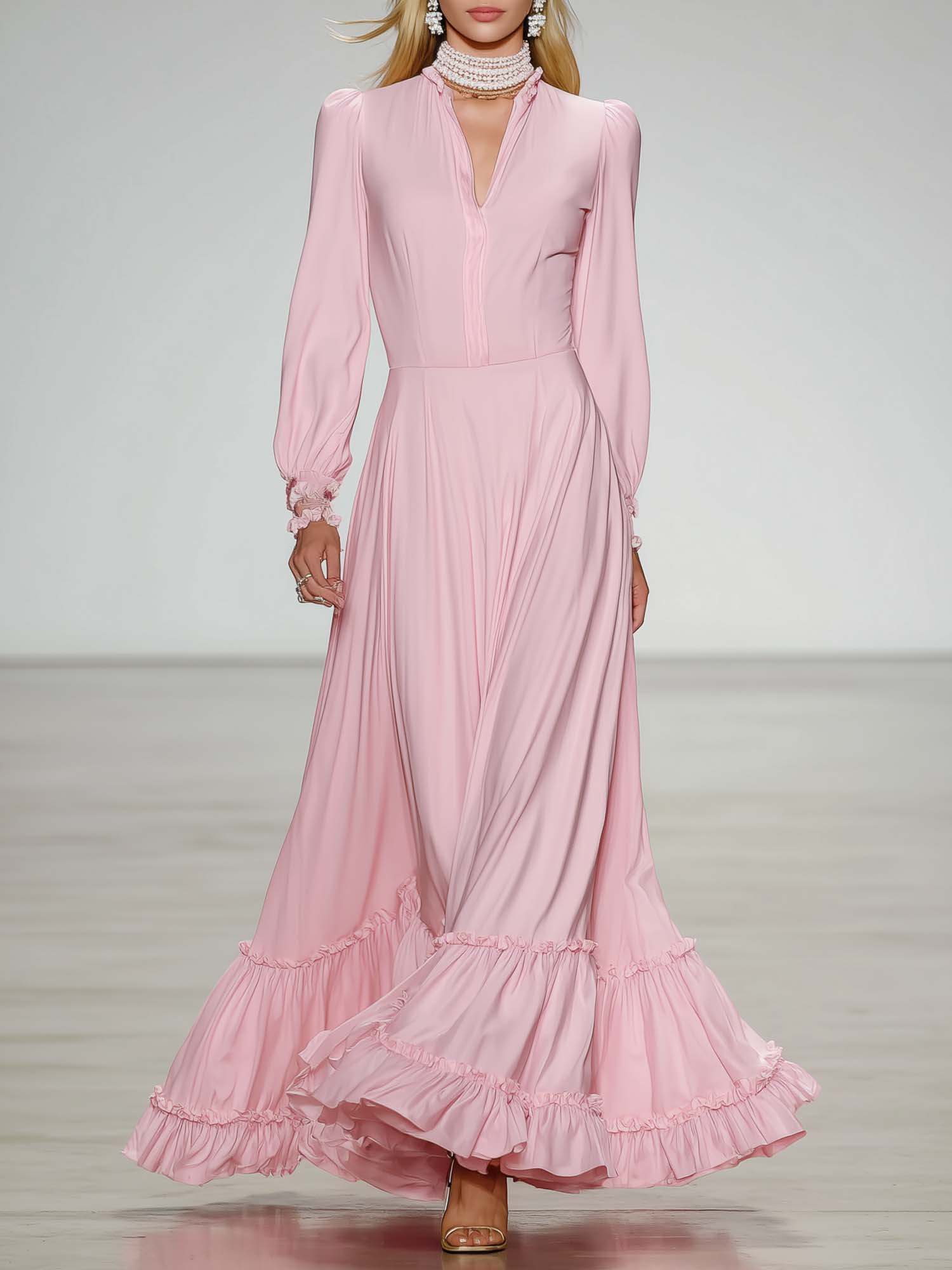 Women's V-neck Ruffled Long-sleeved Maxi Dress