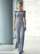 This gray color-blocked off-shoulder top and pants set combines contemporary style with everyday comfort. It’s a versatile addition to a casual wardrobe—easy to wear, simple to style, and adaptable for many occasions from lounging at home to casual outings. A go-to option when you want a pulled-together look with minimal effort.