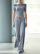 Women's Fashionable Casual Gray Color-blocked Off-shoulder Top And Pants Set
