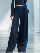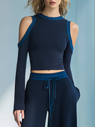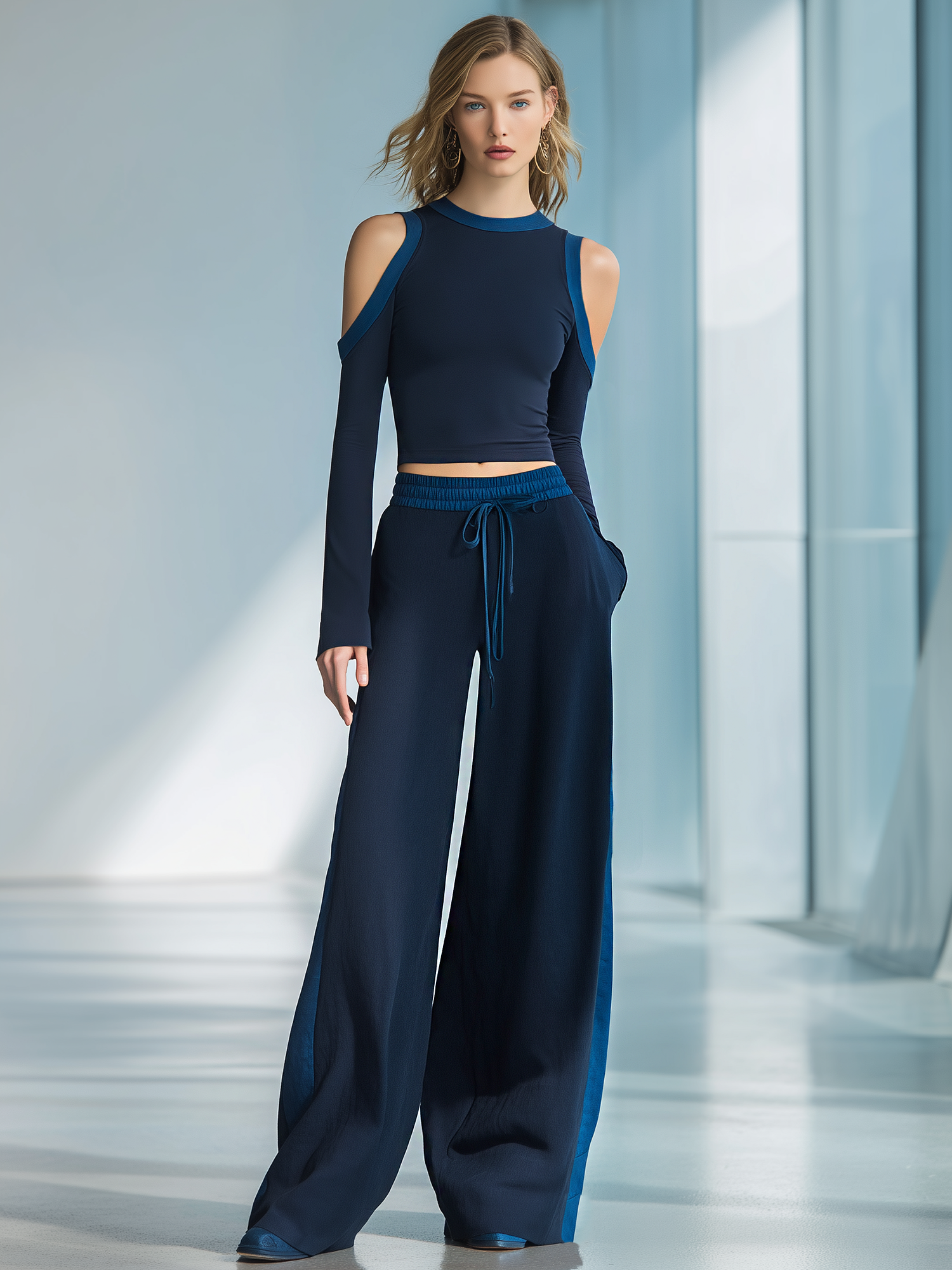 Product Features for Women's Fashionable Casual Navy Blue Off-the-shoulder Crop Top And Trousers Set |