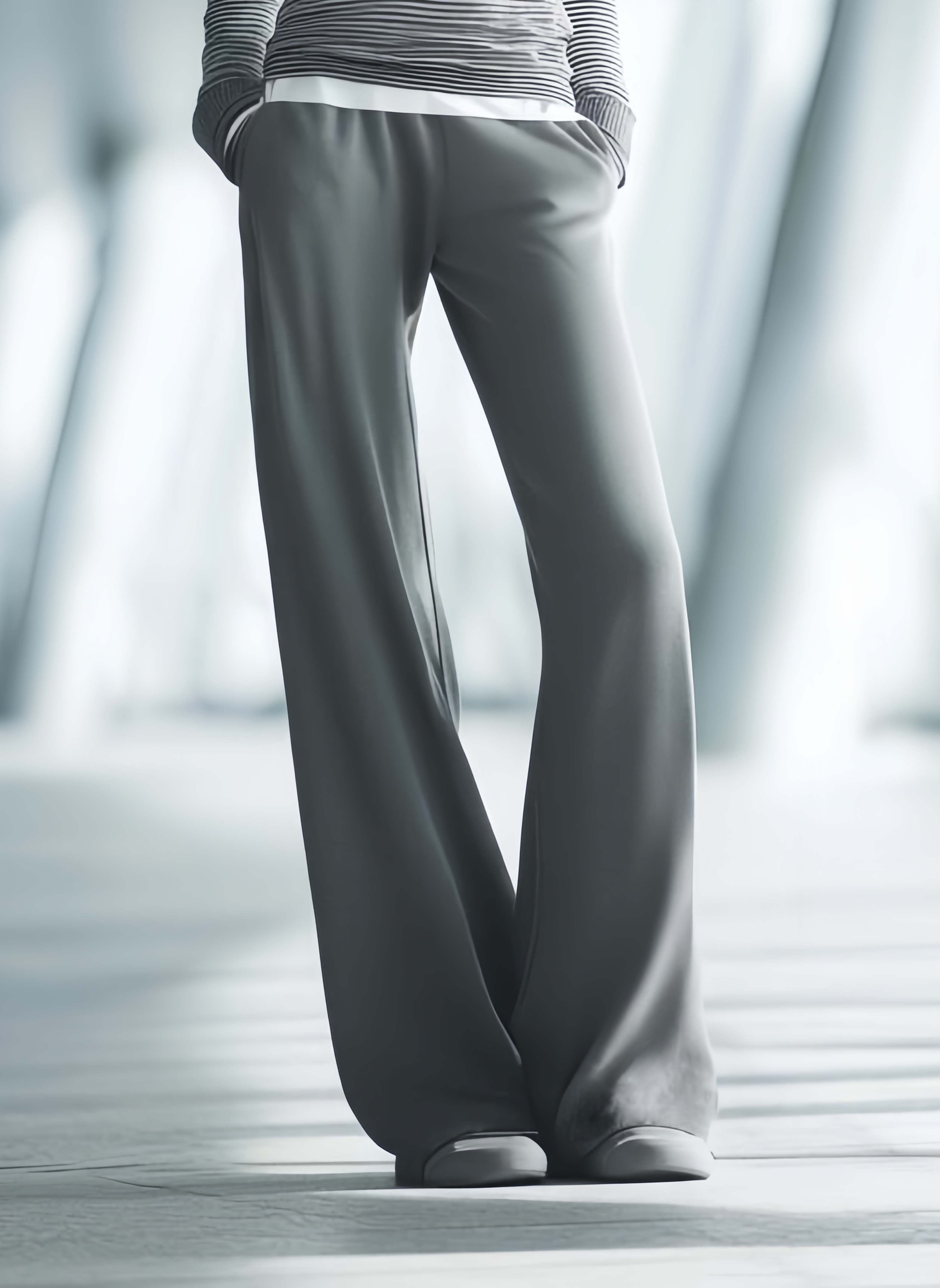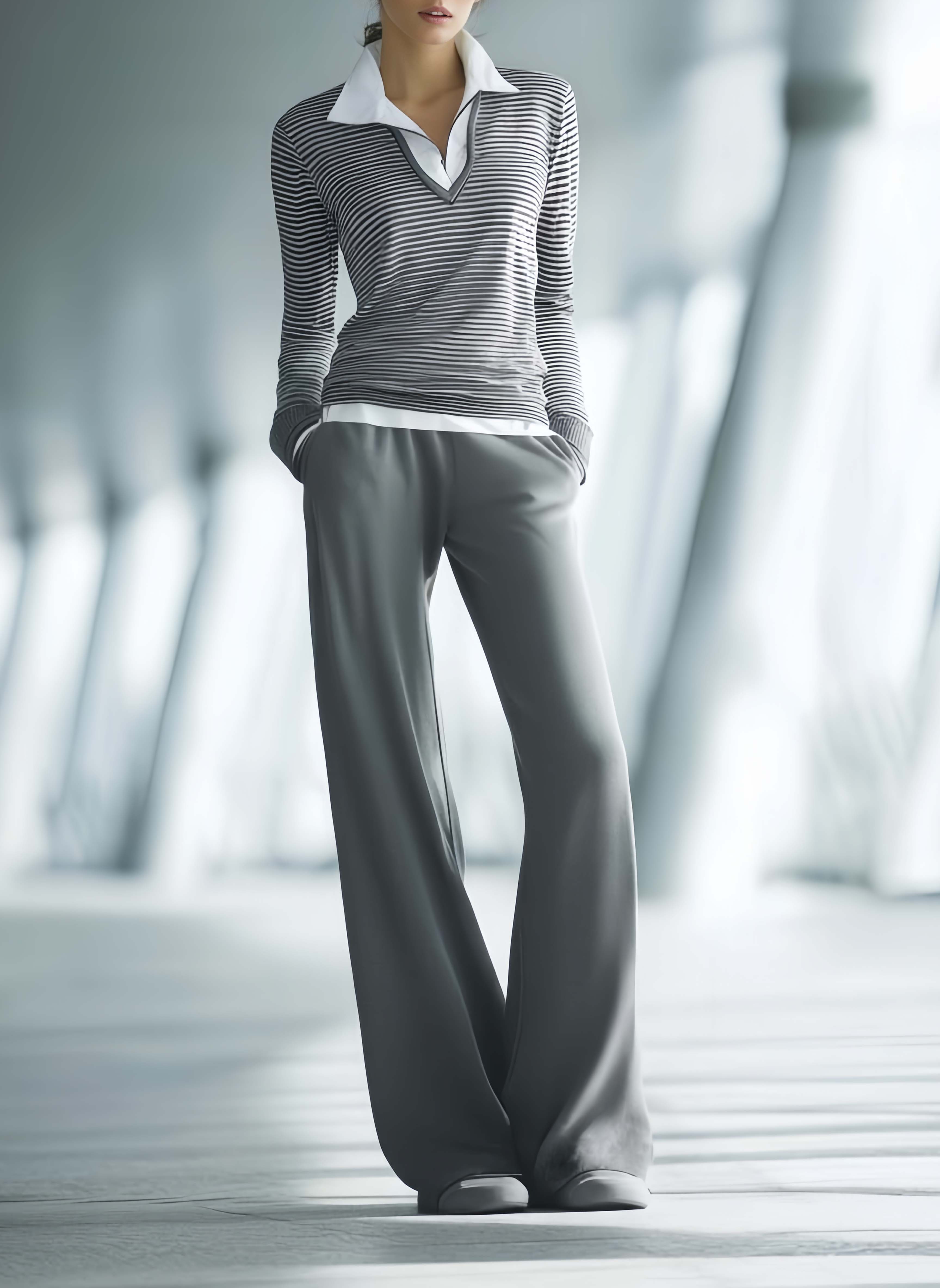 The Women's Fashionable Casual Gray Striped Top And Pants Set is an excellent wardrobe addition for those who prioritize comfort without compromising on style. It serves as a reliable choice for everyday wear, offering a chic yet casual look that is easy to pair with various accessories and shoes for a personalized touch.