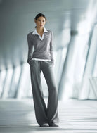 This Women's Fashionable Casual Gray Striped Top And Pants Set seamlessly blends style and comfort, making it an ideal choice for the modern woman. The set includes a relaxed-fit top and a pair of matching pants, both featuring an elegant gray color with a subtle striped pattern that adds a touch of sophistication.