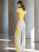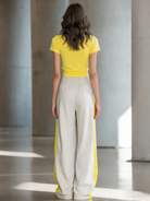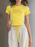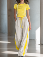 Embrace a fresh and fun style with this Women's Fashionable Casual Yellow Letter Print Short Top And Trousers Set. Comfortable, versatile, and stylish, this outfit is a must-have addition for those looking to make a fashion statement.