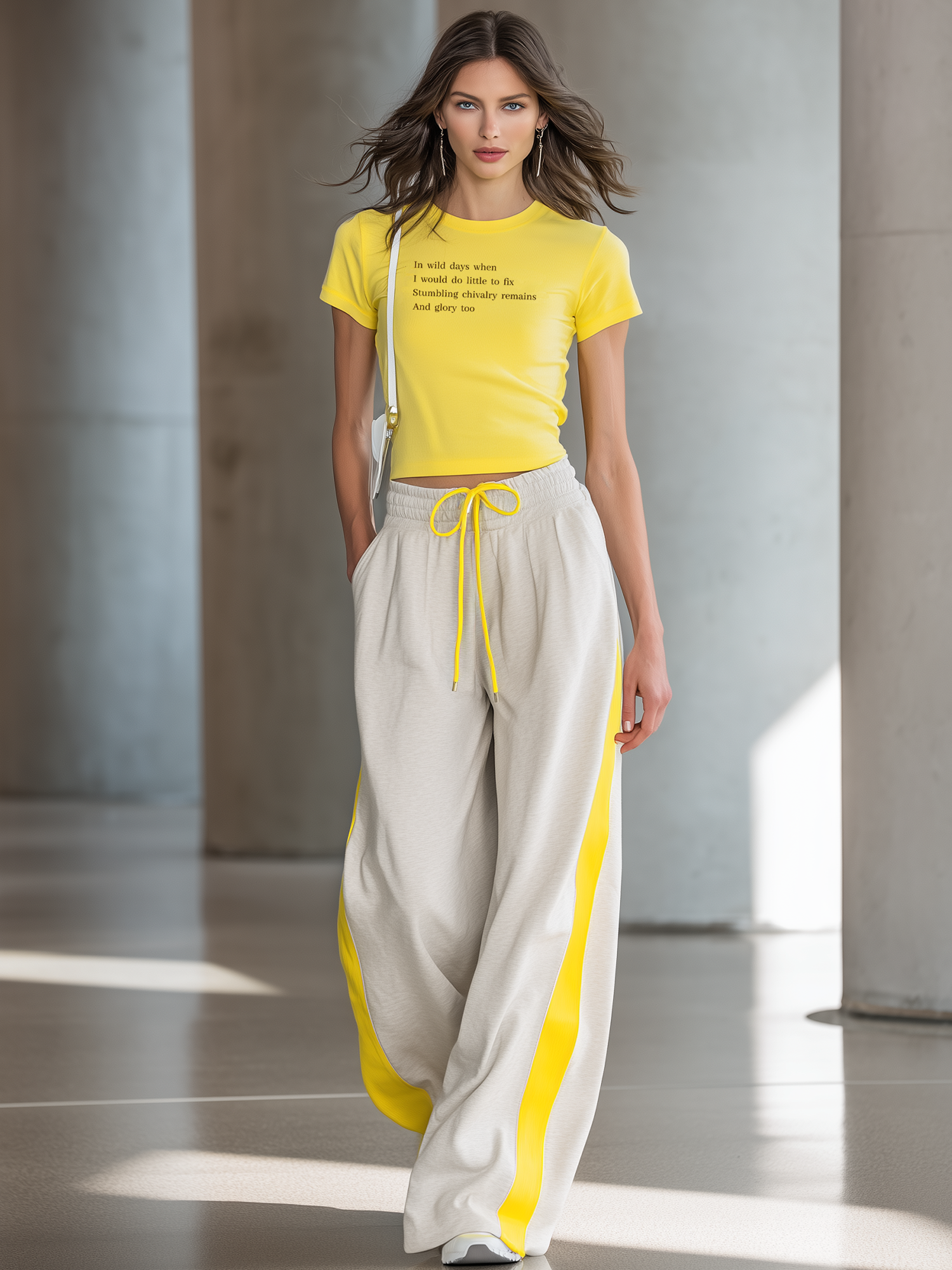 This trendy Women's Fashionable Casual Yellow Letter Print Short Top And Trousers Set is designed for the modern, style-conscious individual. Featuring a vibrant yellow color and bold letter print, this matching set is both eye-catching and comfortable, perfect for casual outings or laid-back social gatherings.