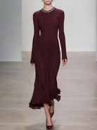 The Women's Burgundy Beaded Collar Pleated Knit Dress is a versatile piece that suits both formal and work settings. Its elegant design, featuring a beaded collar and pleated knit fabric, ensures you make a graceful entrance on any occasion.