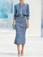 This Women's Blue Tweed Suit is a perfect blend of elegance and modern style, designed for the contemporary woman who values both fashion and function. Its timeless design and luxurious details make it an essential addition to any wardrobe, ready to make an impression at any event.