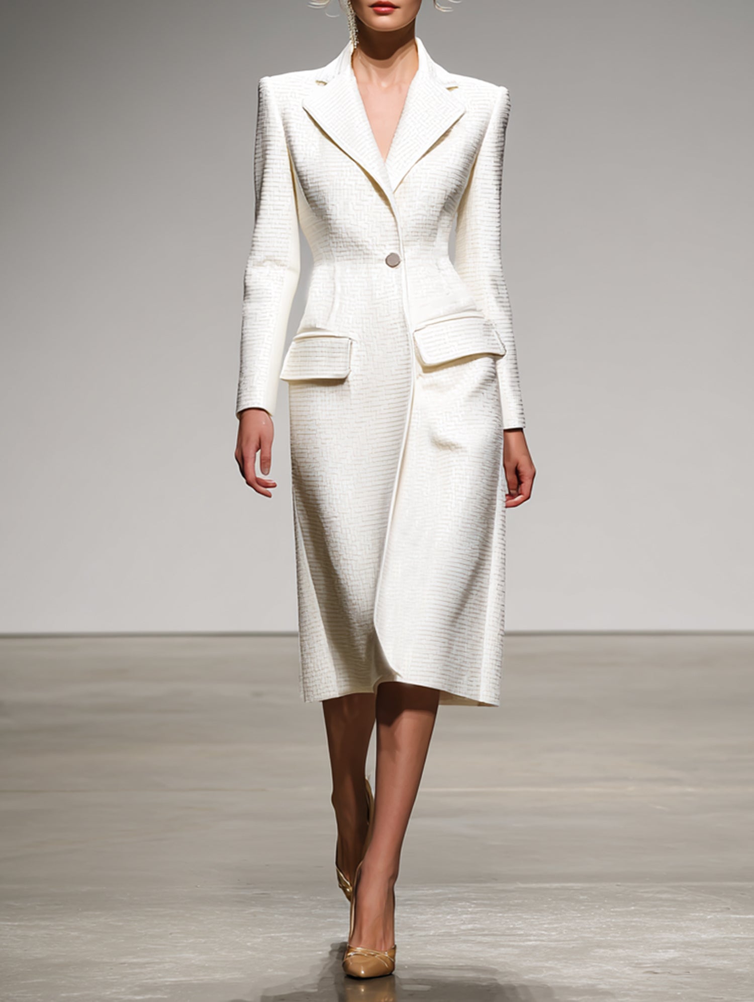 In summary, the Women’s High-End Custom White Textured Waist-Cinching Mid-Length Elegant Commute Single-Button Coat is a must-have addition to any fashion-conscious wardrobe. Its blend of contemporary design, luxury material, and flattering fit ensures that you make a lasting impression wherever you go.